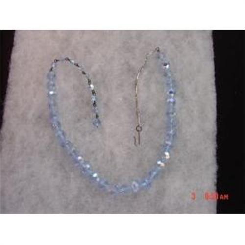 Here is a lovely sparkling blue crystal lead beaded glass necklace. It is in excellent condition. It appears that there was a added piece so that it may be worn as a choker or a necklace.