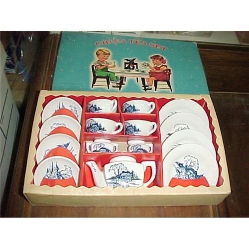 <tr><td>Title:Vintage Blue Mill Scene Toy Tea Set</td></tr>