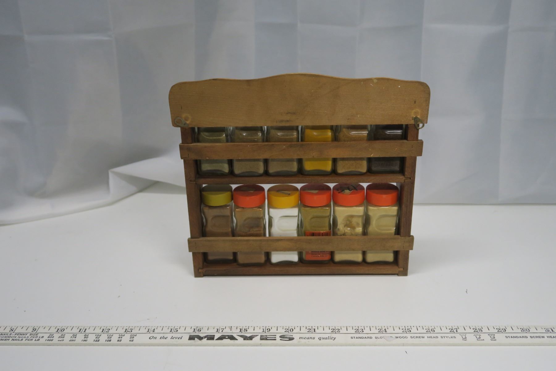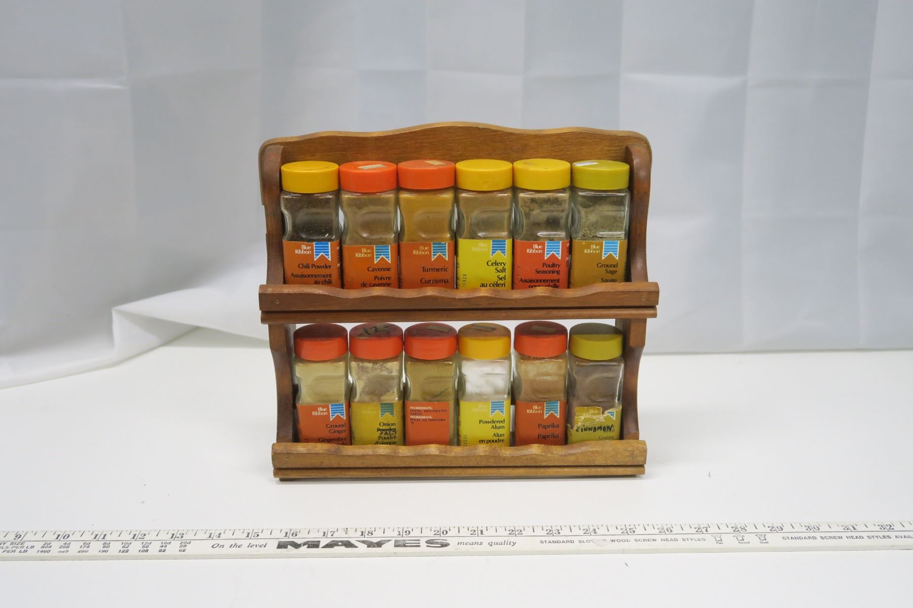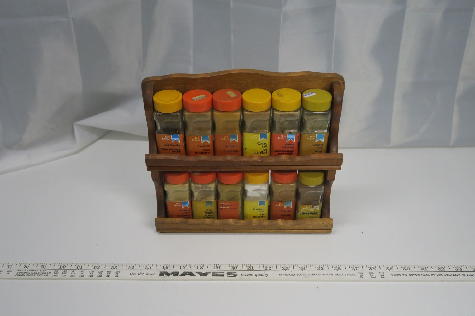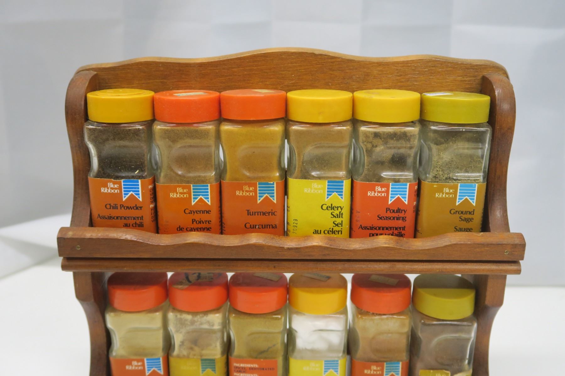 Vintage Blue Ribbon Wooden Spice Rack with Spices