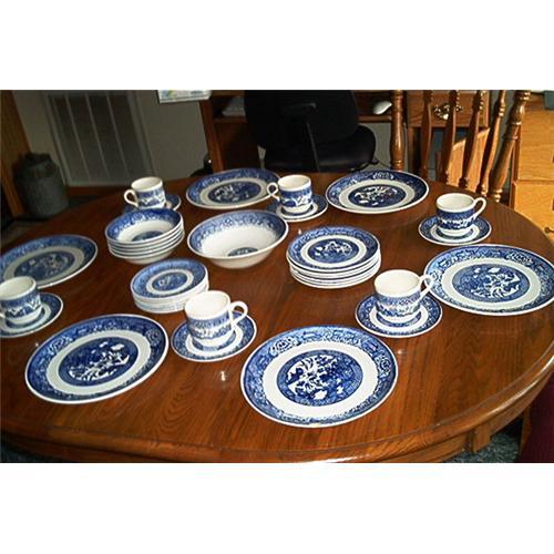 <tr><td>Title:Vintage, Blue Transferware China Set</td></tr>