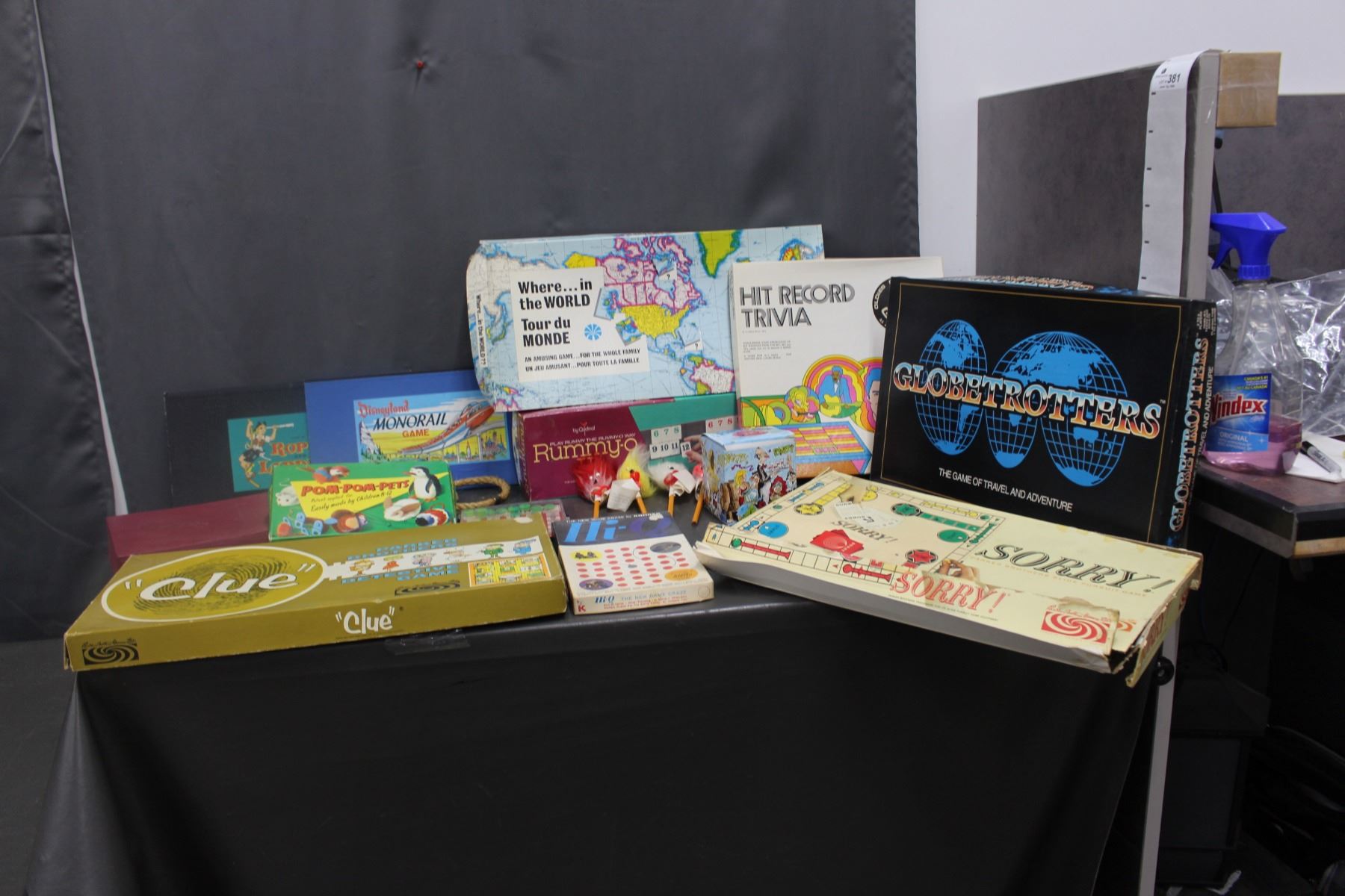 Sorry, Clue, Rummy-O, Globetrotters, Hi-Q, etc