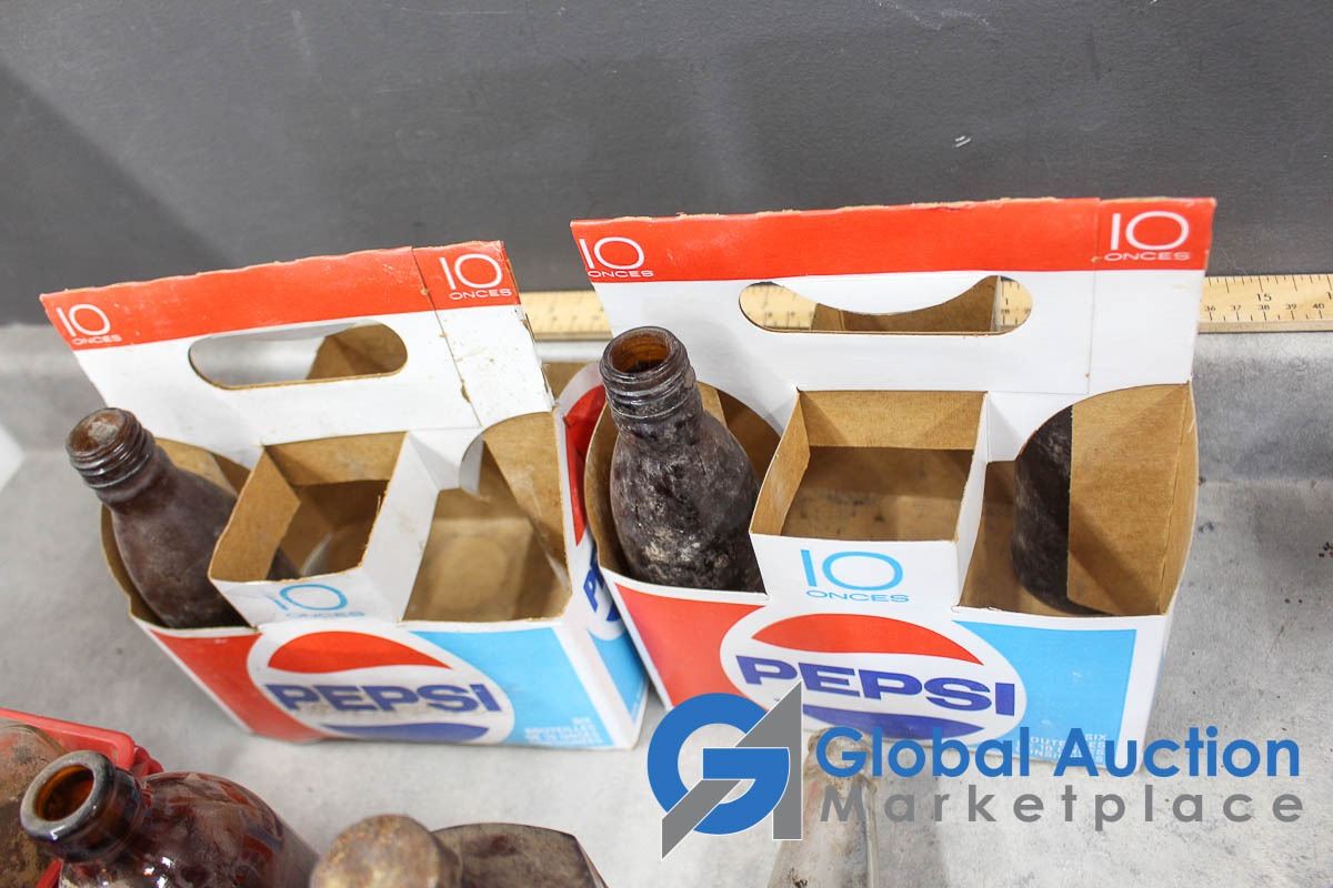 Vintage Bottle, Coca-Cola, Pepsi Paper Cases, etc