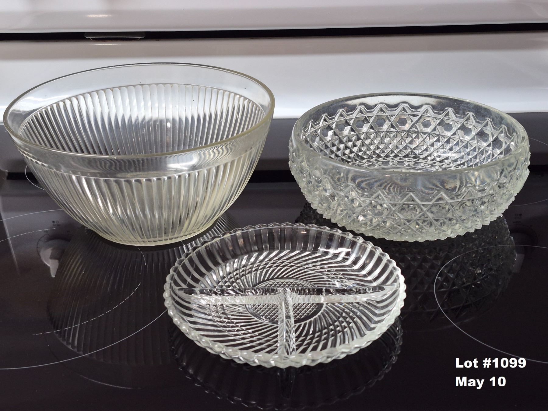 Vintage Bowls and Serving Platter - Depression Era Heavy Glass