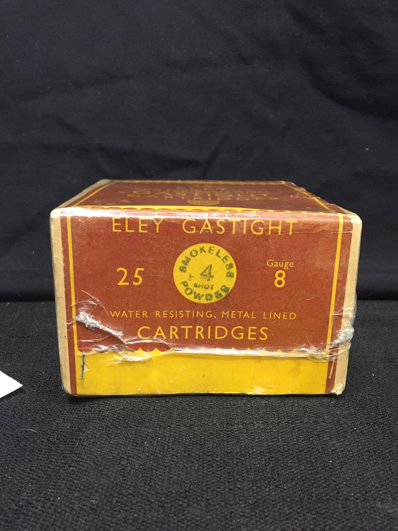 Vintage Box of 8 Gauge 25 EALY Water Resistant Gas Tight Cartridges. Empty Collectible Box.