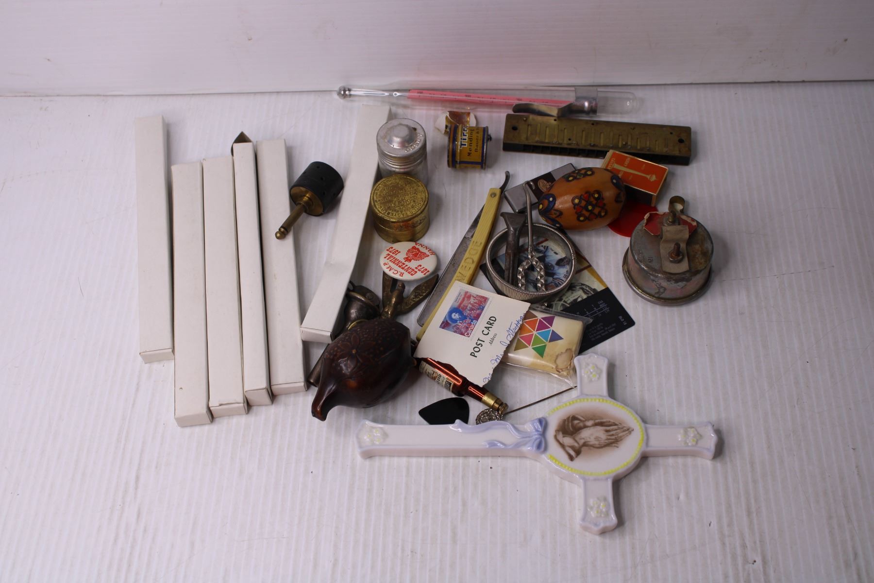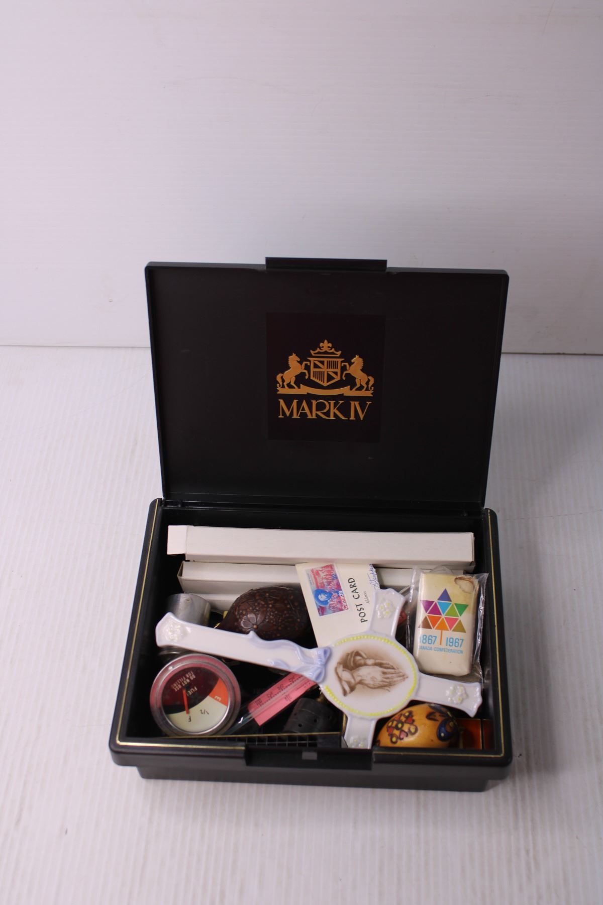 Vintage Box of Assorted Items - Letter Openers, Miniatures, Advertising Promos