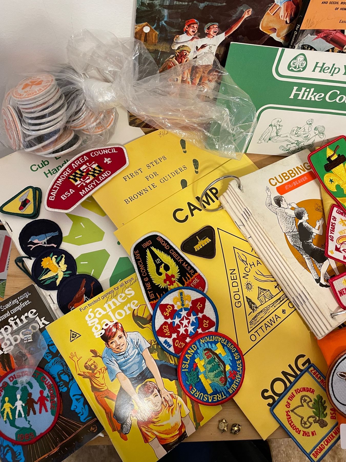 Includes flag carrier hoisters as well as flags with carrying case, pins, books, scarves, 2 x little long sleeve shirts with patches, hats, and more!