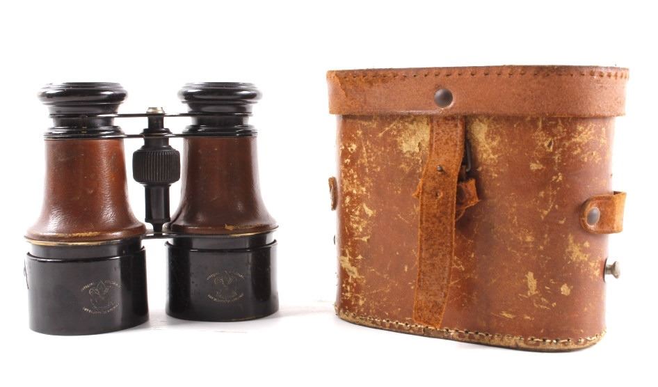 This lot features boy scout binoculars with case. The binoculars are marked with the boy scout emblem and a VS. The binoculars are working and appear to have all lenses. The case is missing the lid and straps. The overall condition of the set is fair. Measures: 5" H x 5 1/4" W x 2 1/4"D
