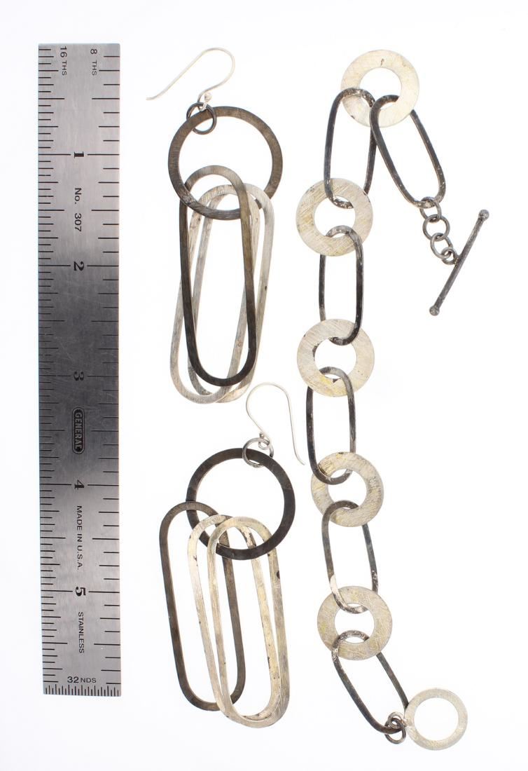Sterling Silver | | Vintage Bracelet & Earrings Set | | Weight:23.8 Grams, | Dimensions: Bracelet: 9" total length, .75" face width, Earrings: 1" x 3.5" (for both) |