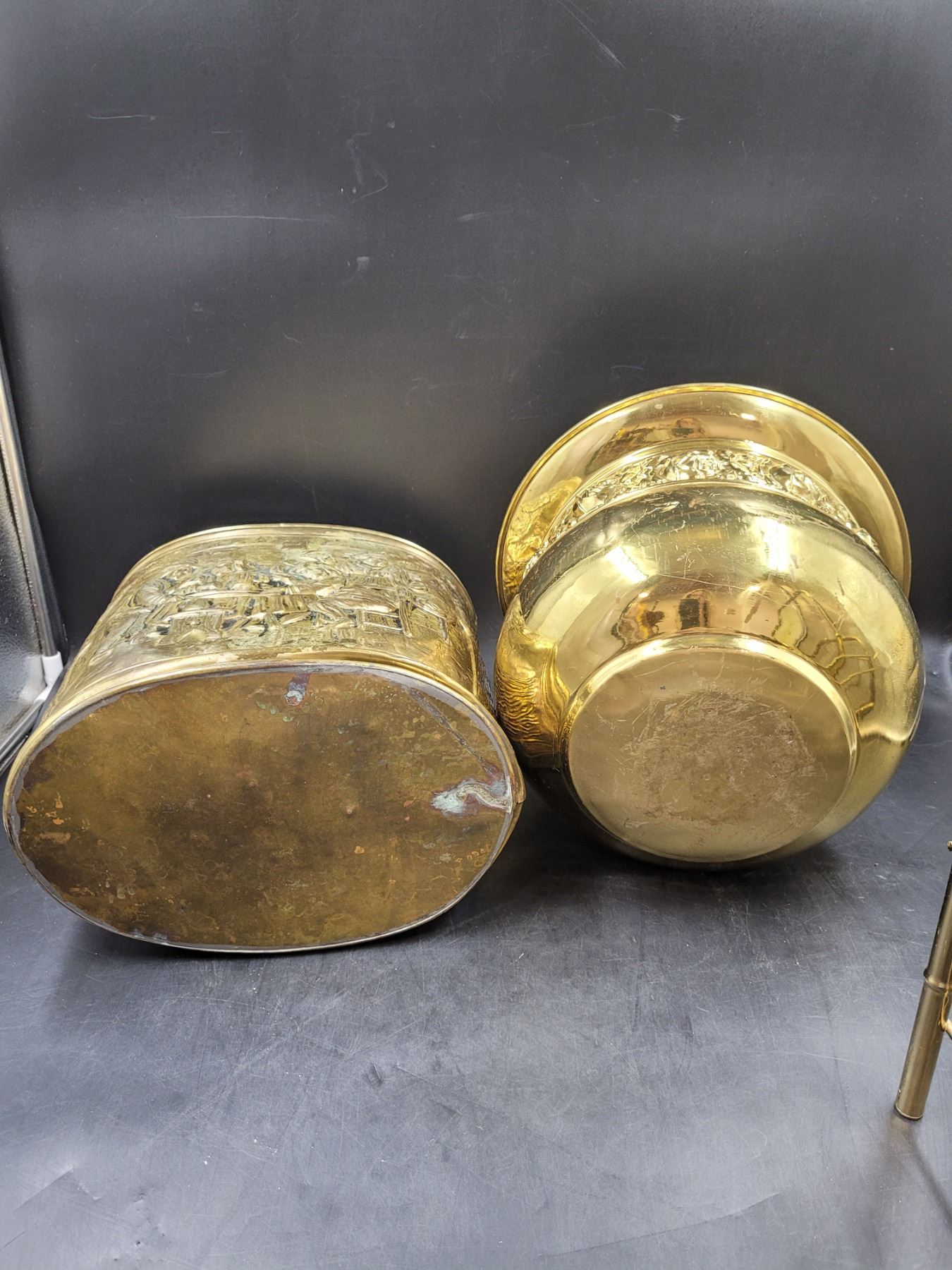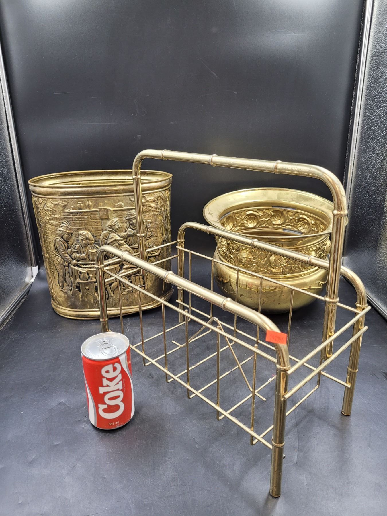 Vintage Brass Garbage Can, Planter & Magazine Rack