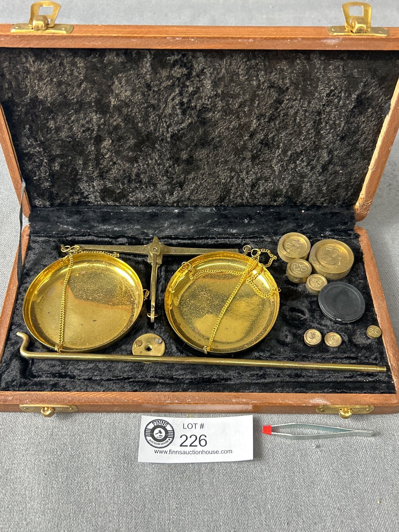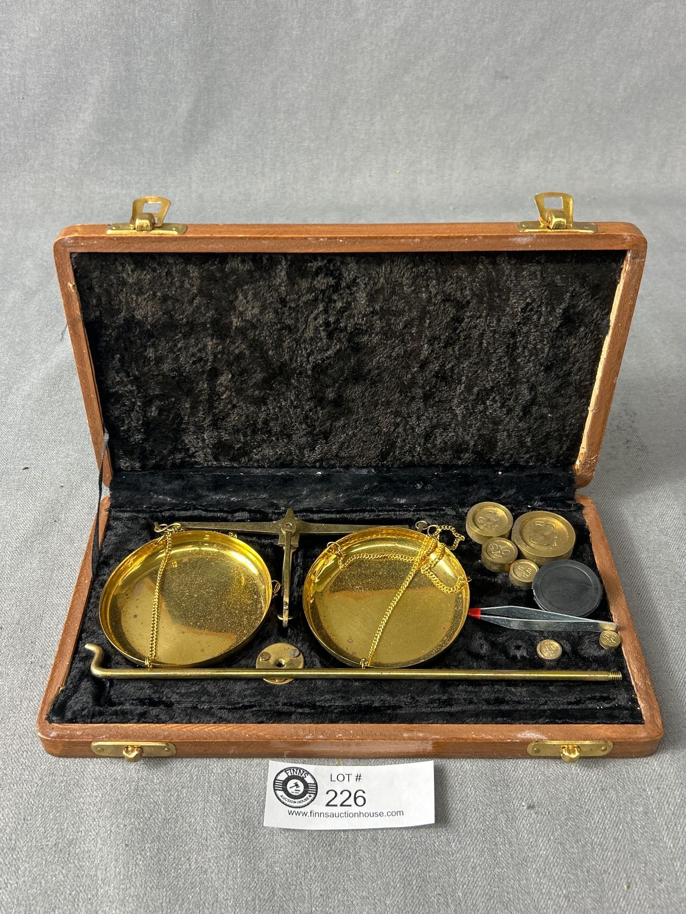 Vintage Brass Scale w/ 1g-50g Weights In Original Storage Box