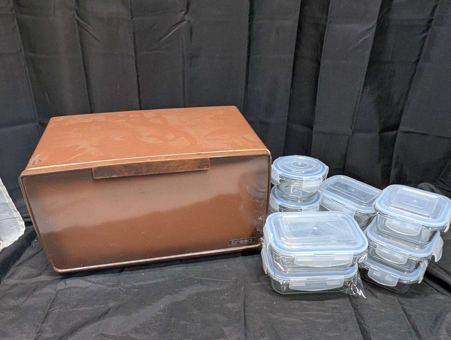 Vintage Bread Box w/ Lot of New Glass Tupperware Containers