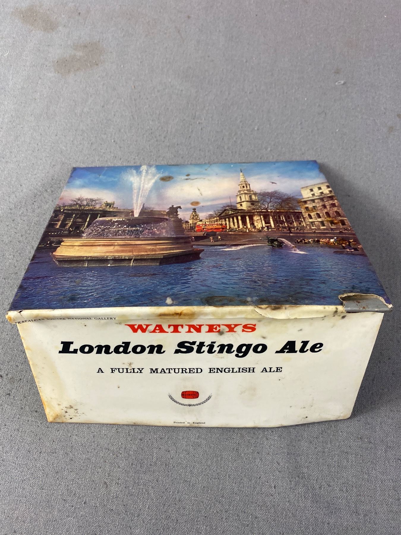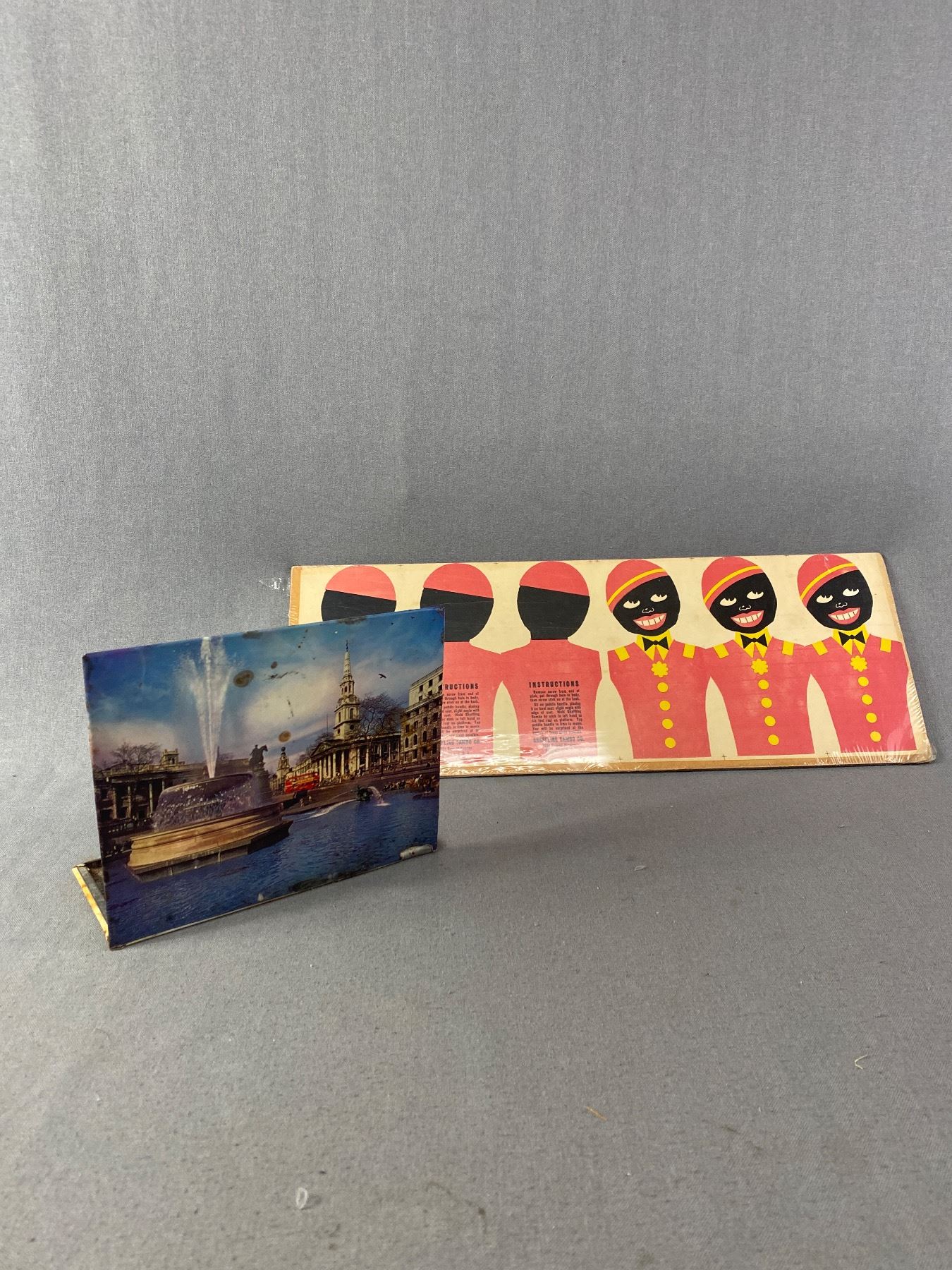 Vintage British Beer Advertisement Tin Sign Approx. 7" x 8.5" w/ 8.5" x 4" Base & "Shuffling Sambo" Instructions On 21" x 7.75" Displayer (Double Sided)