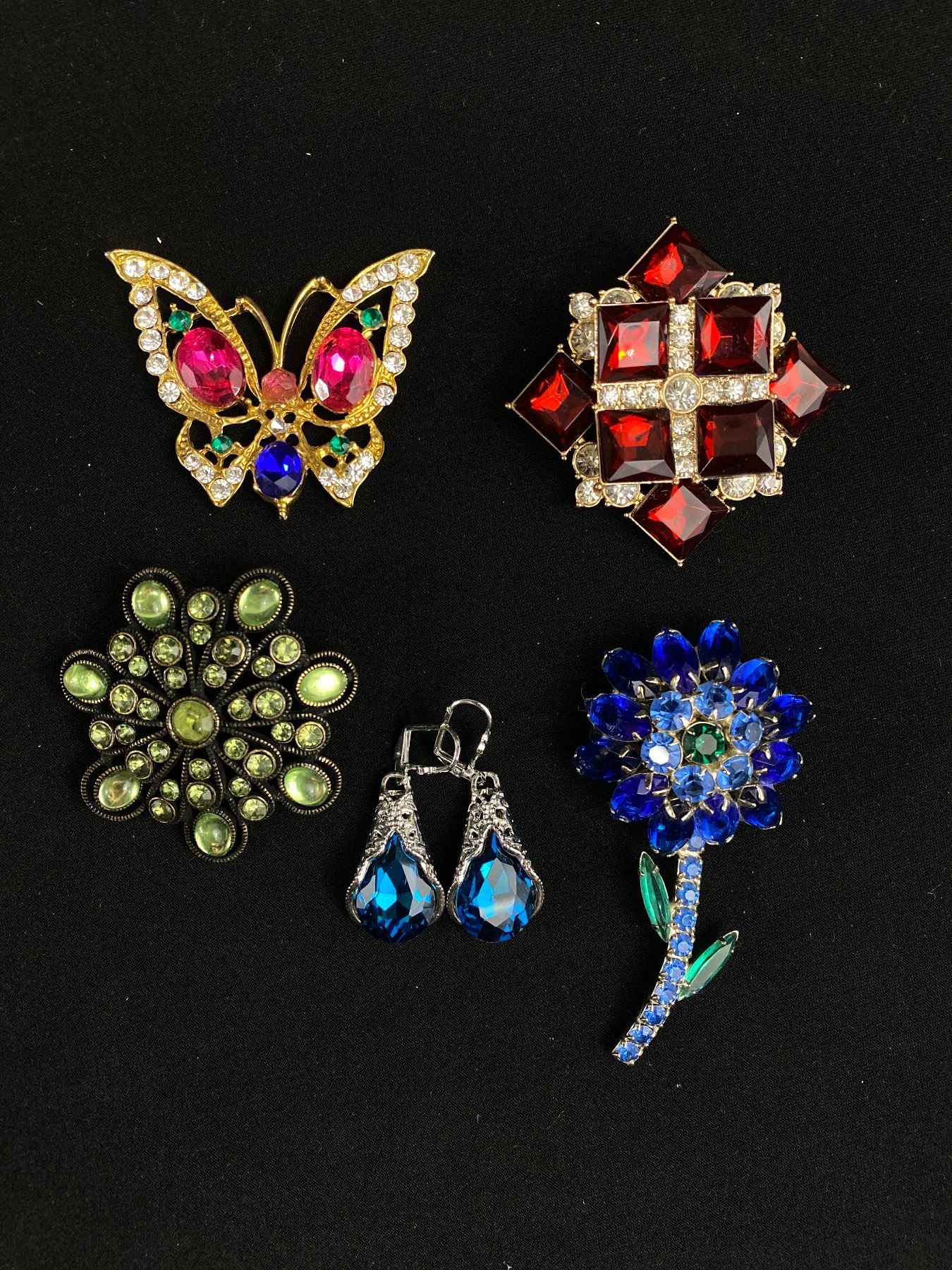 Nice Lot of Vintage Brooches Plus a Pair of Earrings