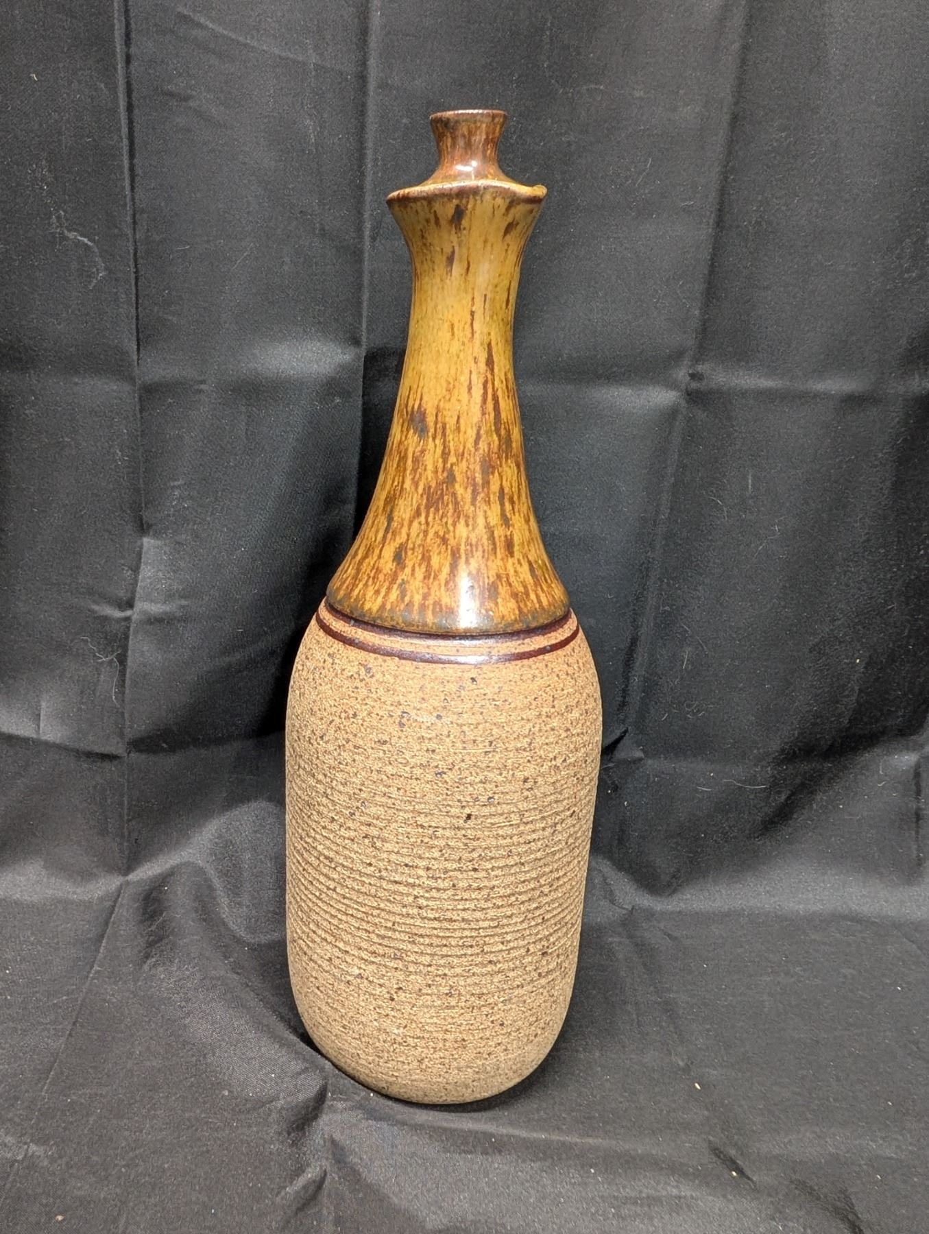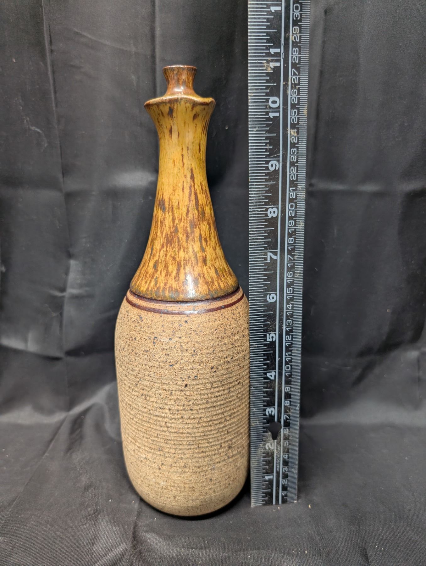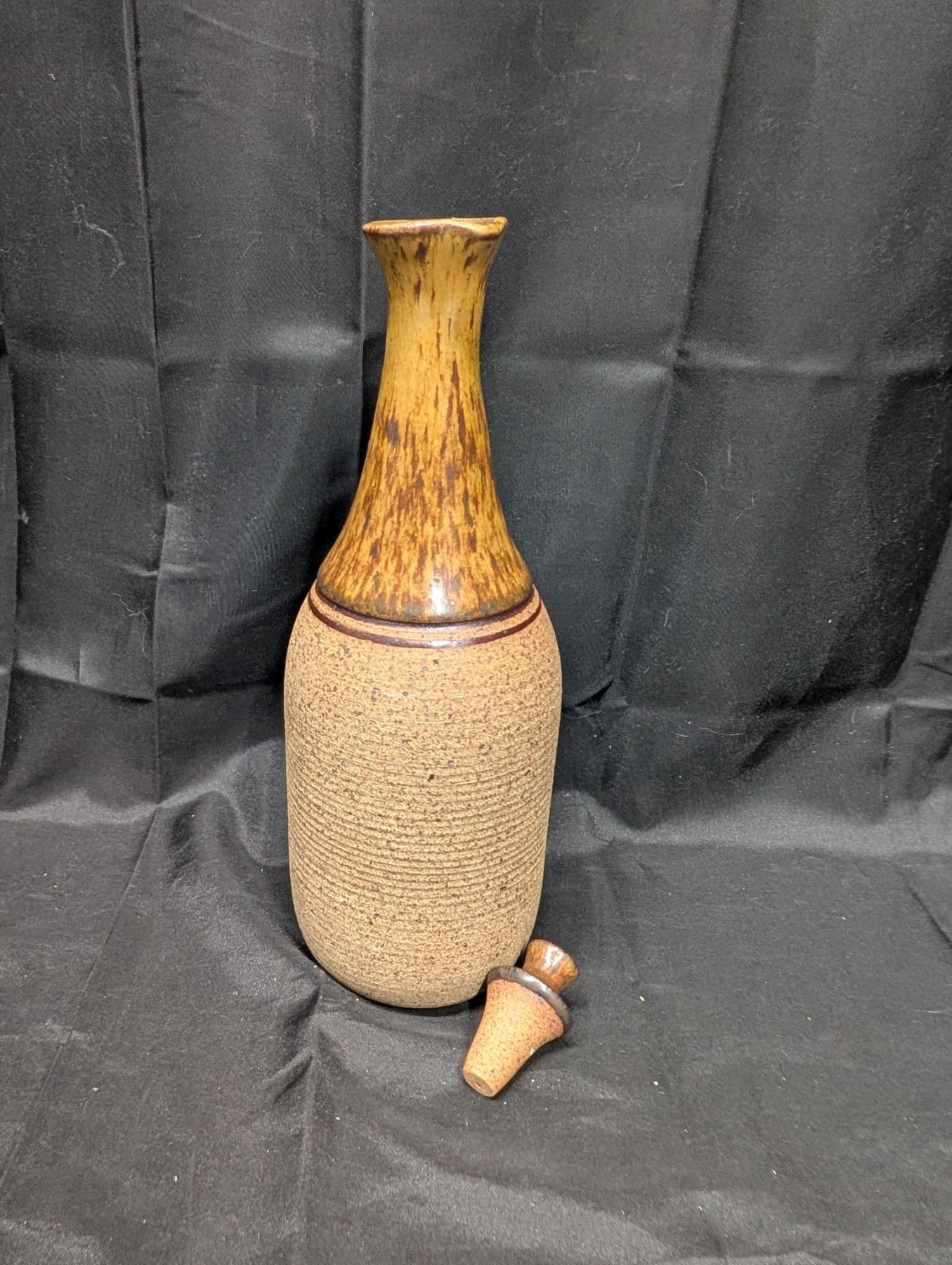 Vintage Brown Glazed Pottery Vase With a Stopper 9 1/4" Tall