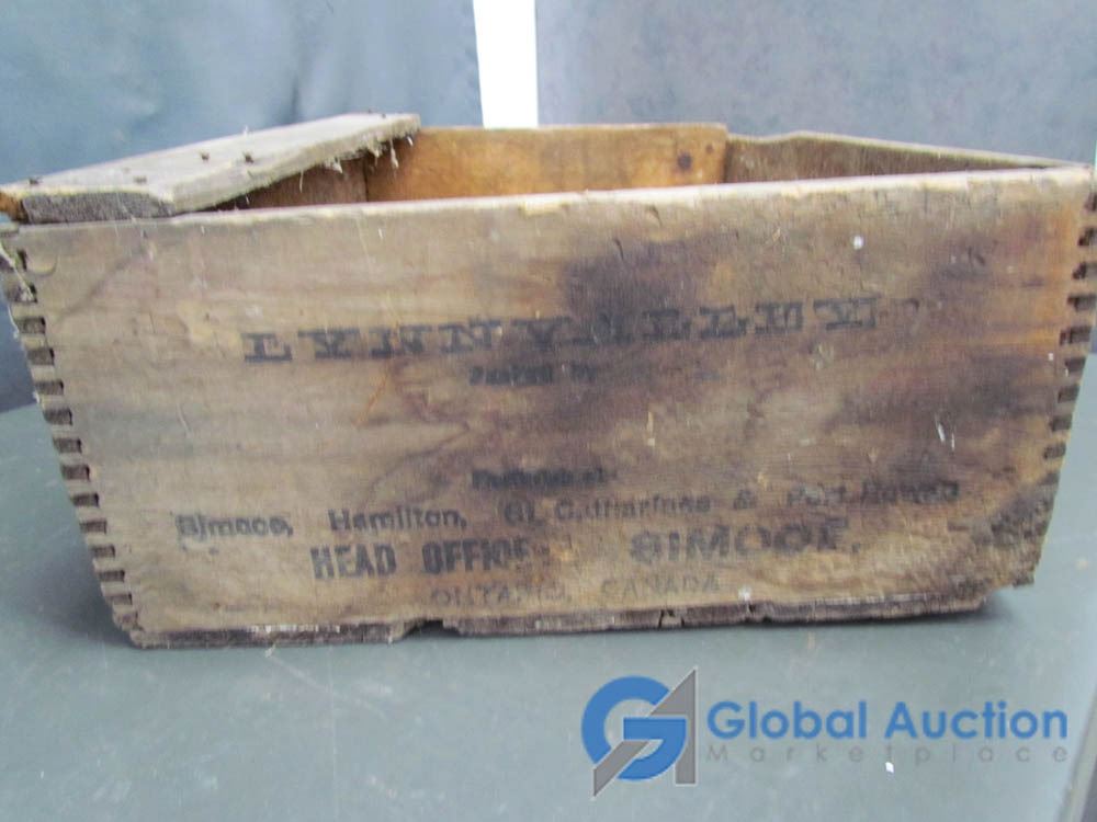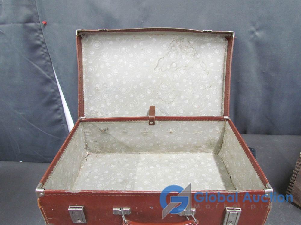**Vintage Brown Suitcase & Wooden Linseed Oil Crate
