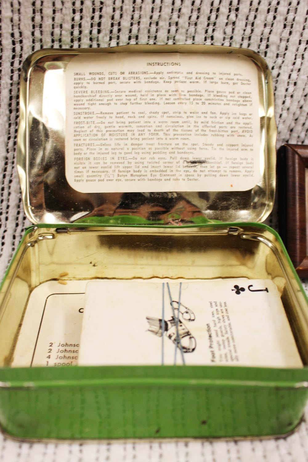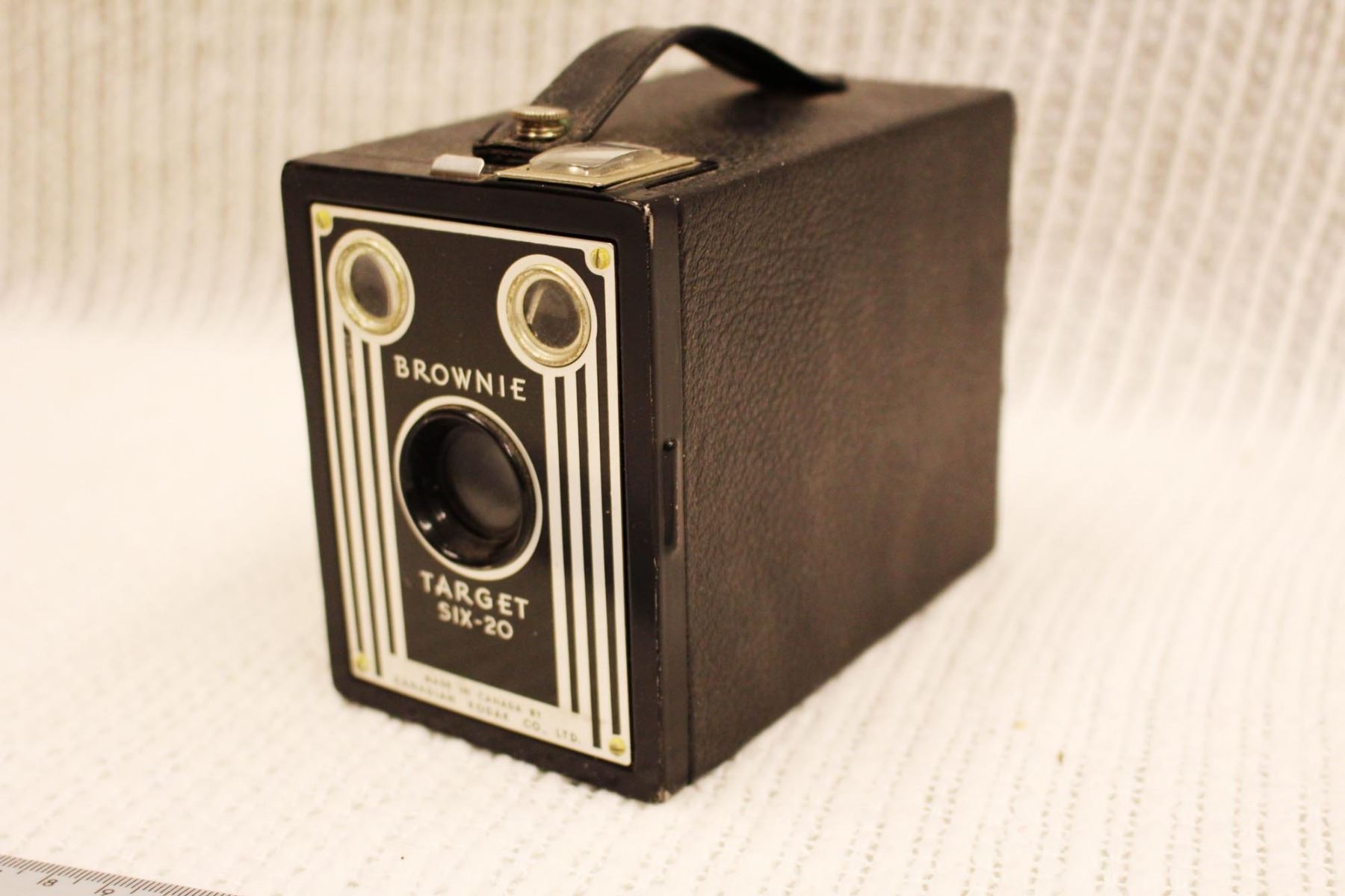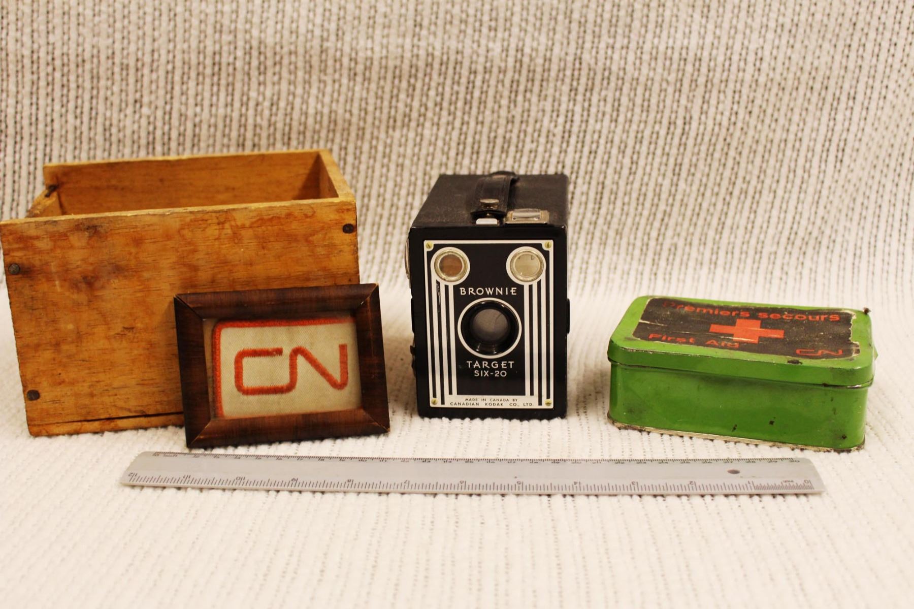 Vintage Brownie Target Six-20 Camera, Wooden Box, First Aid Tin and CN Badge