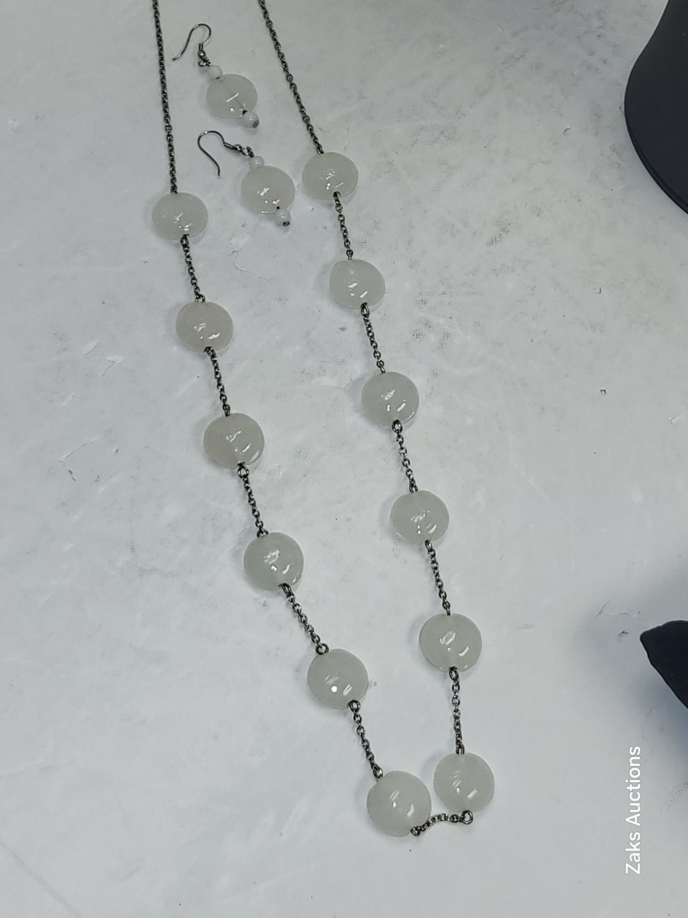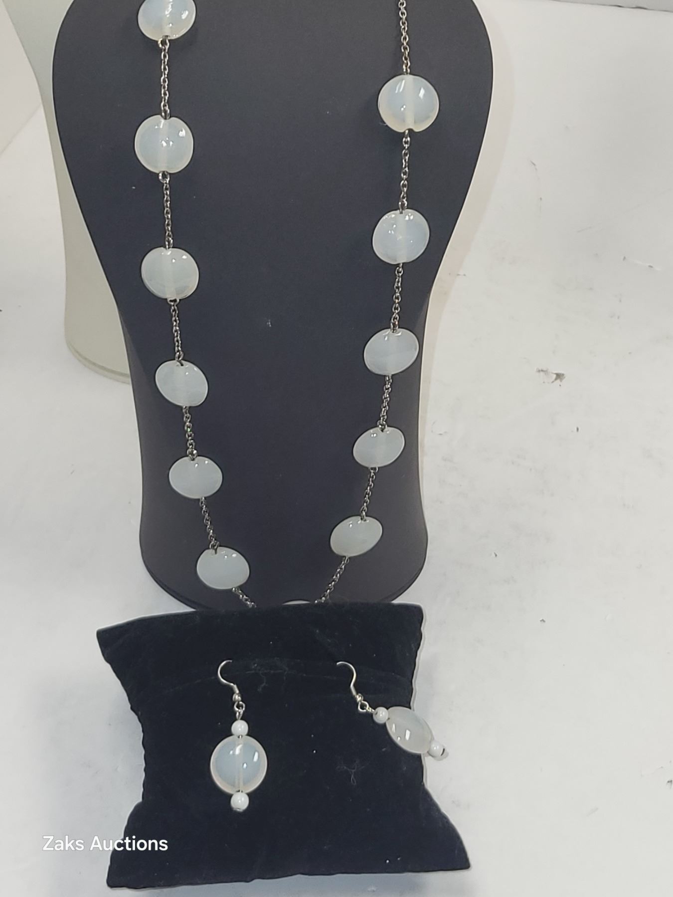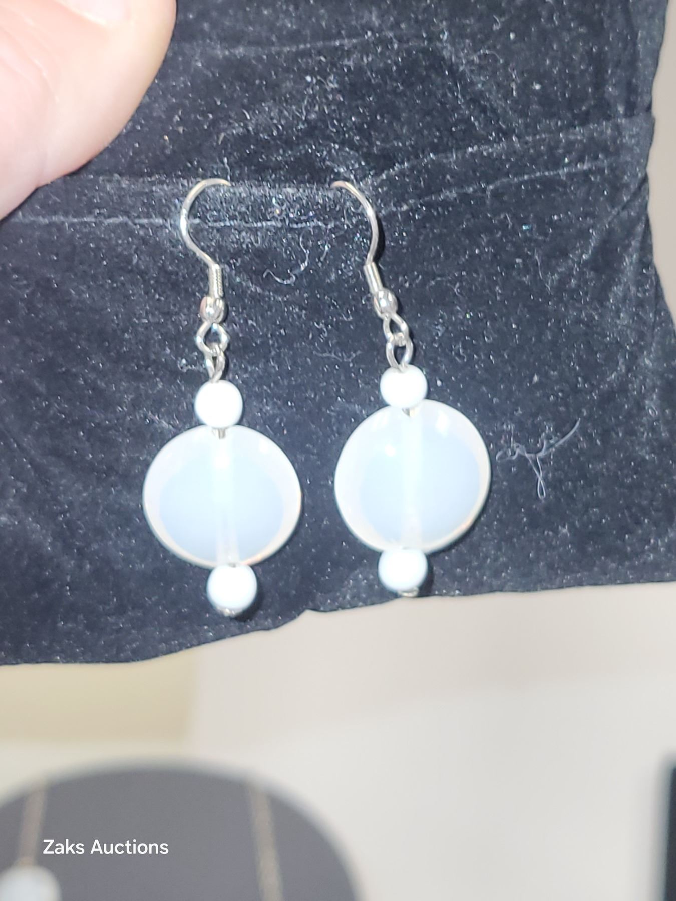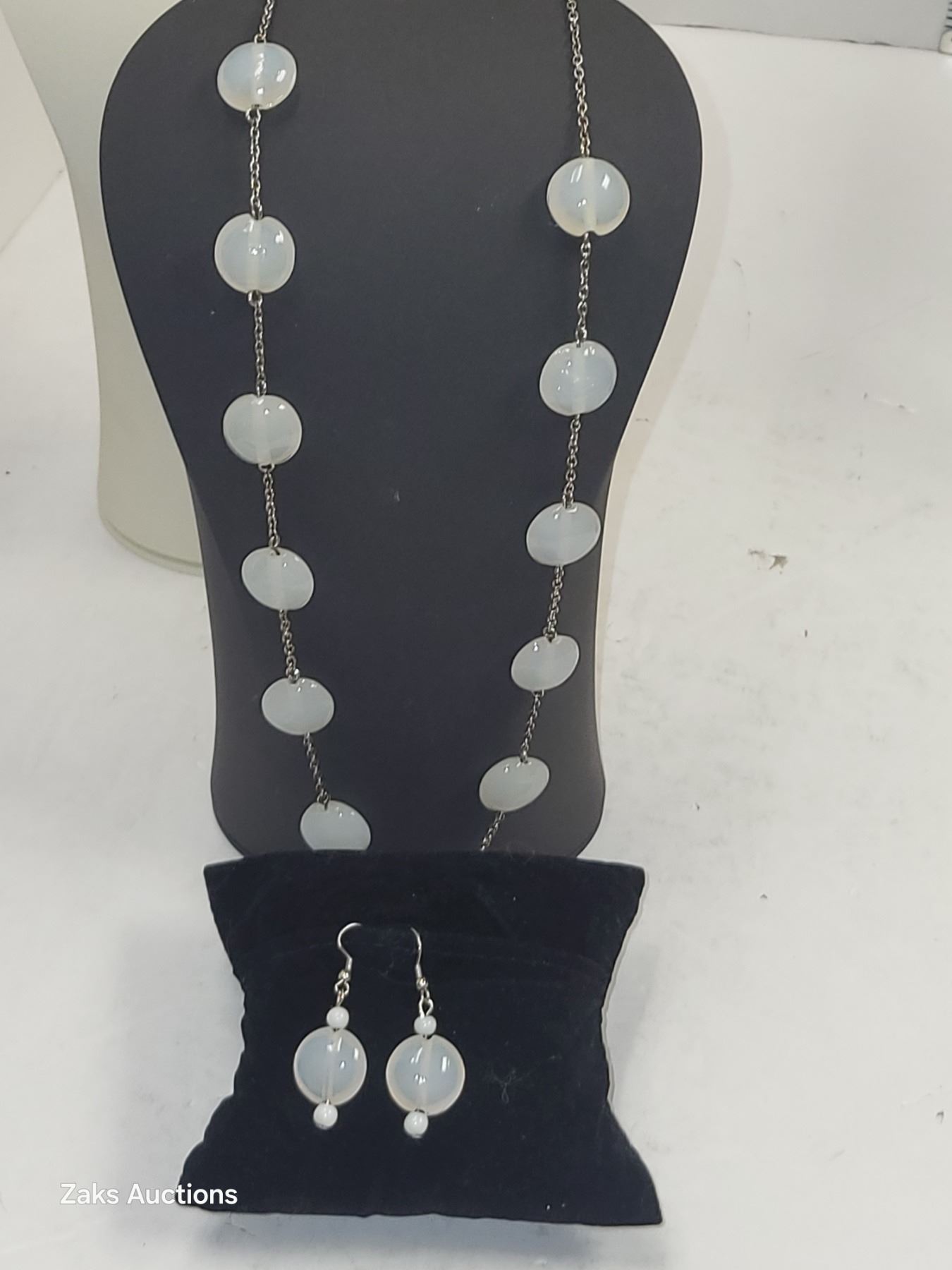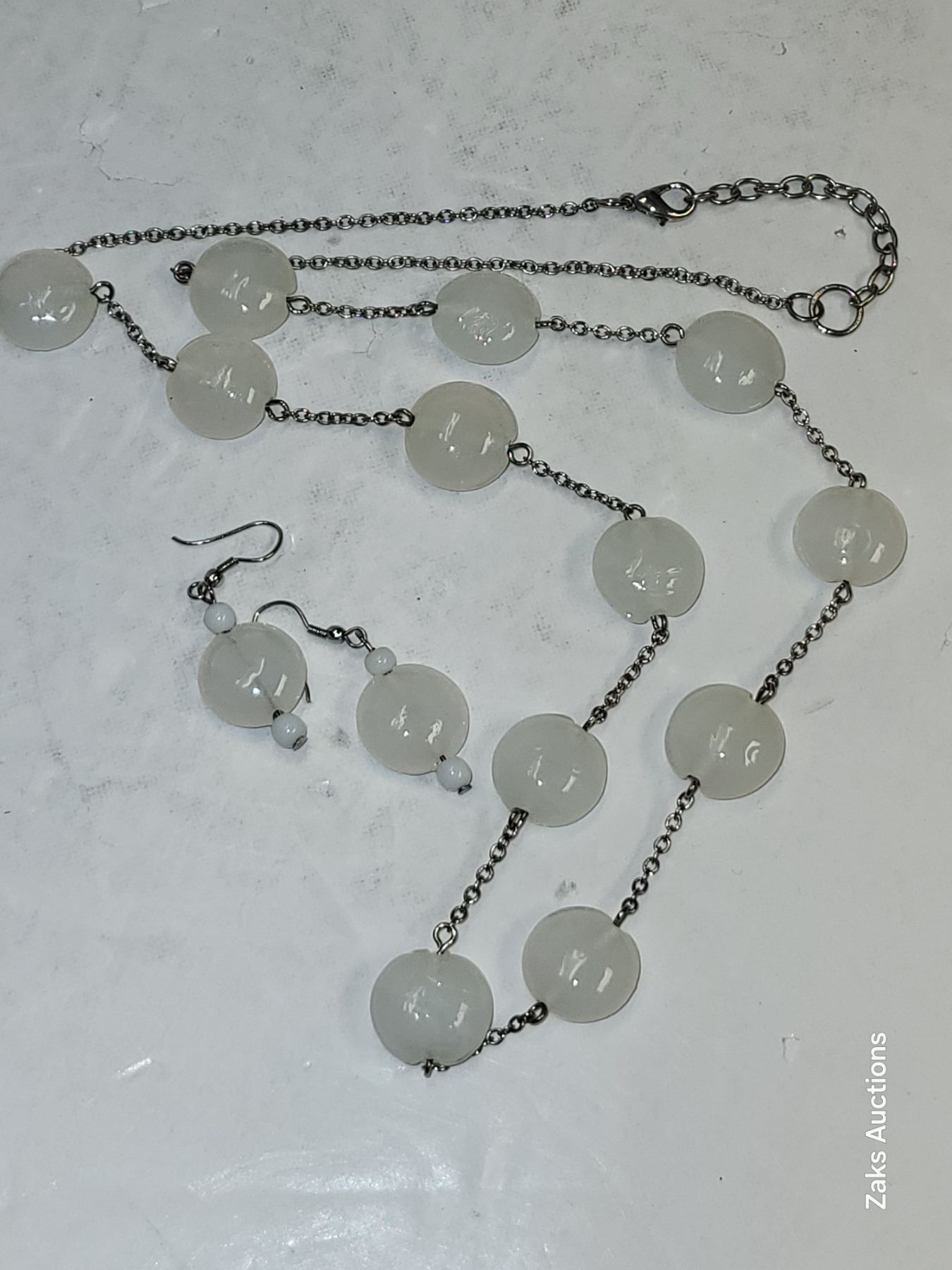 Vintage Button Drop Glass Necklace & Pierced Earring Set - Pictures do not do this one justice!