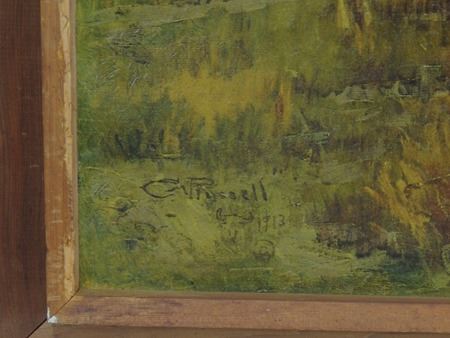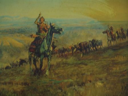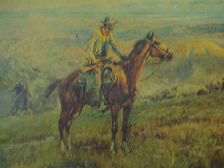 Mid 1900s, Large early color print with canvas back of his famous painting "The Toll Collectors" circa 1913. Good condition, yellowed. In barnwood frame. 20" x 30" (25" x 35" framed)
