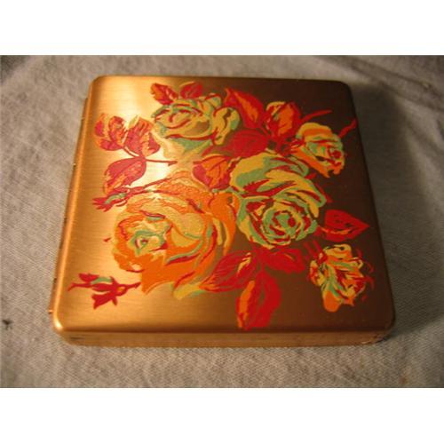Vintage COMPACT 24 k gold plated, w/ roses #1006593