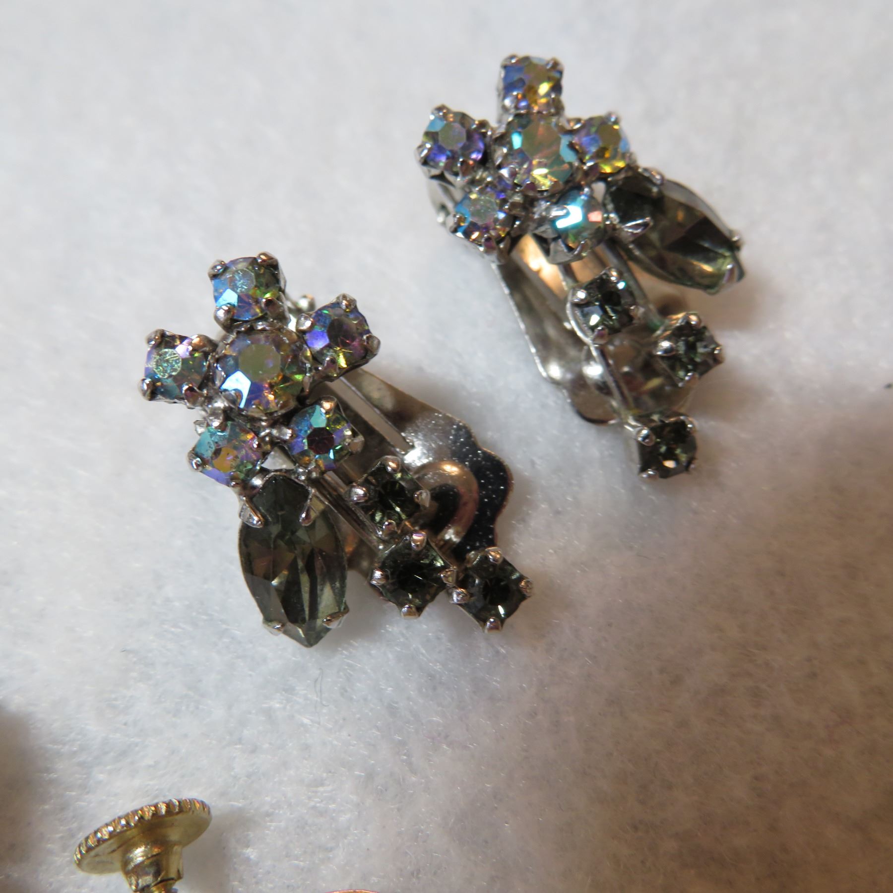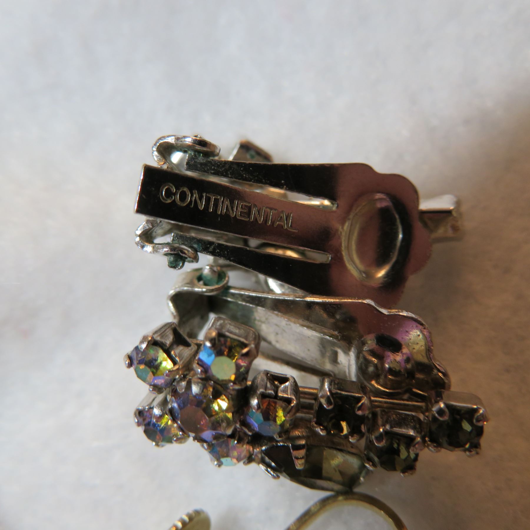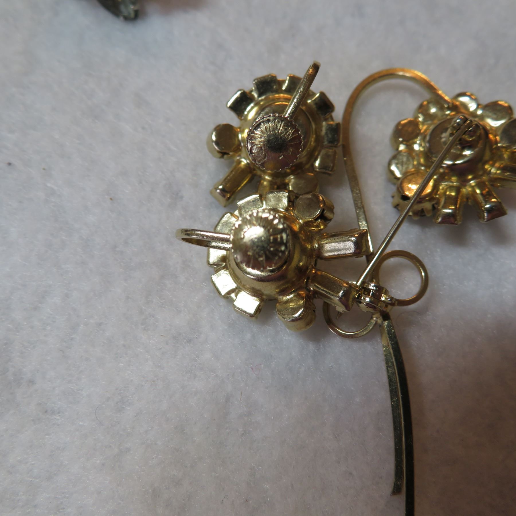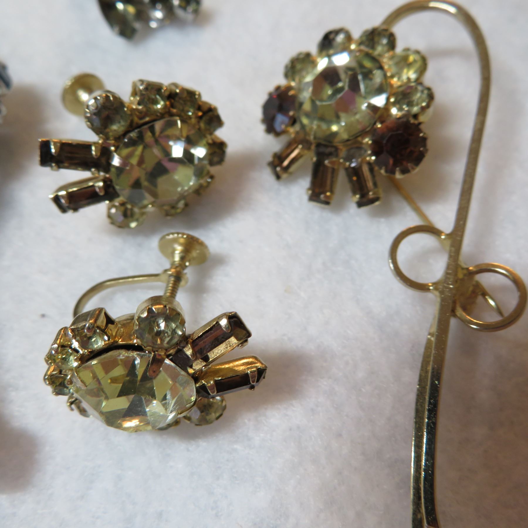 Vintage CONTINENTAL Jewellery lot. Stunning two tone blue brooch, two tone clear/black clip on earrings and matching Flower brooch and clip on earrings with yellow/amber colored stones