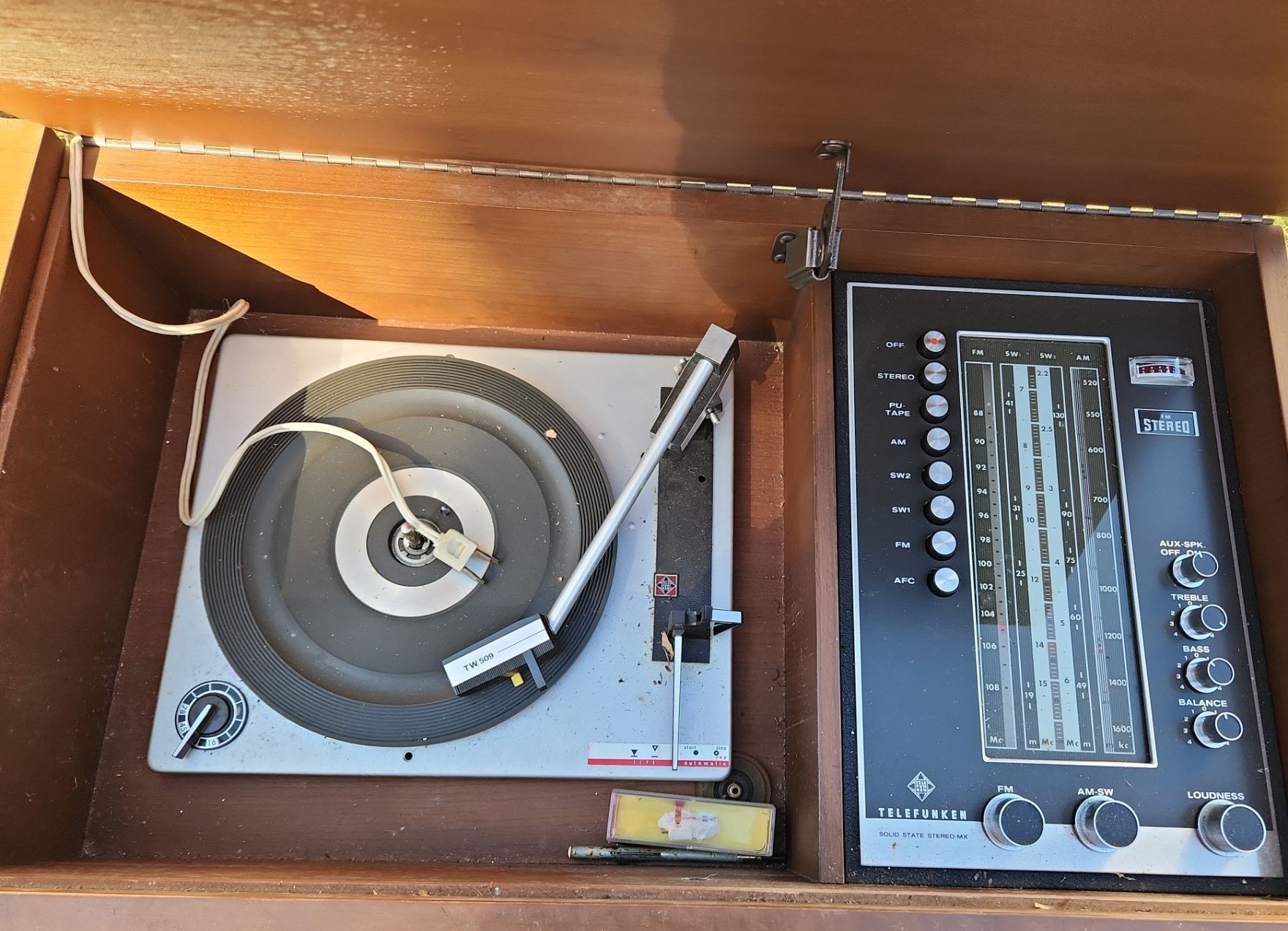 Vintage Cabinet Record Player Telefunken Model TW509, Some Scuffs and Scratches, Was in Storage and Has Some Water Damage to Finish, Bring Assistance to Move