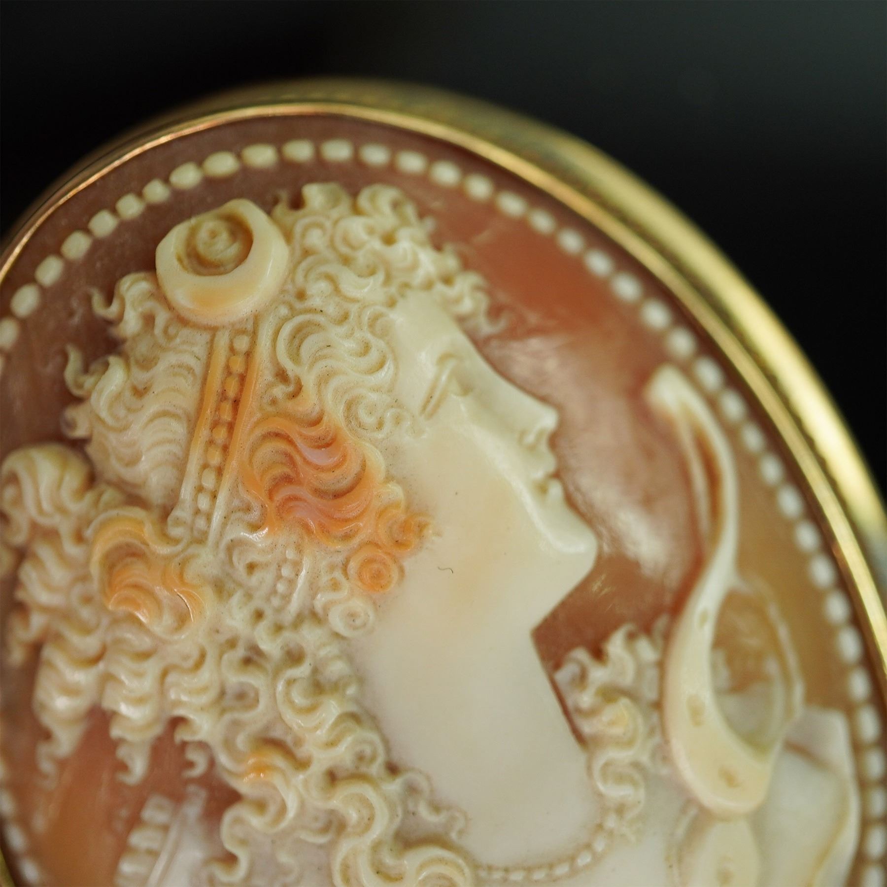 Vintage Cameo Brooch, Shell Portrait Carving