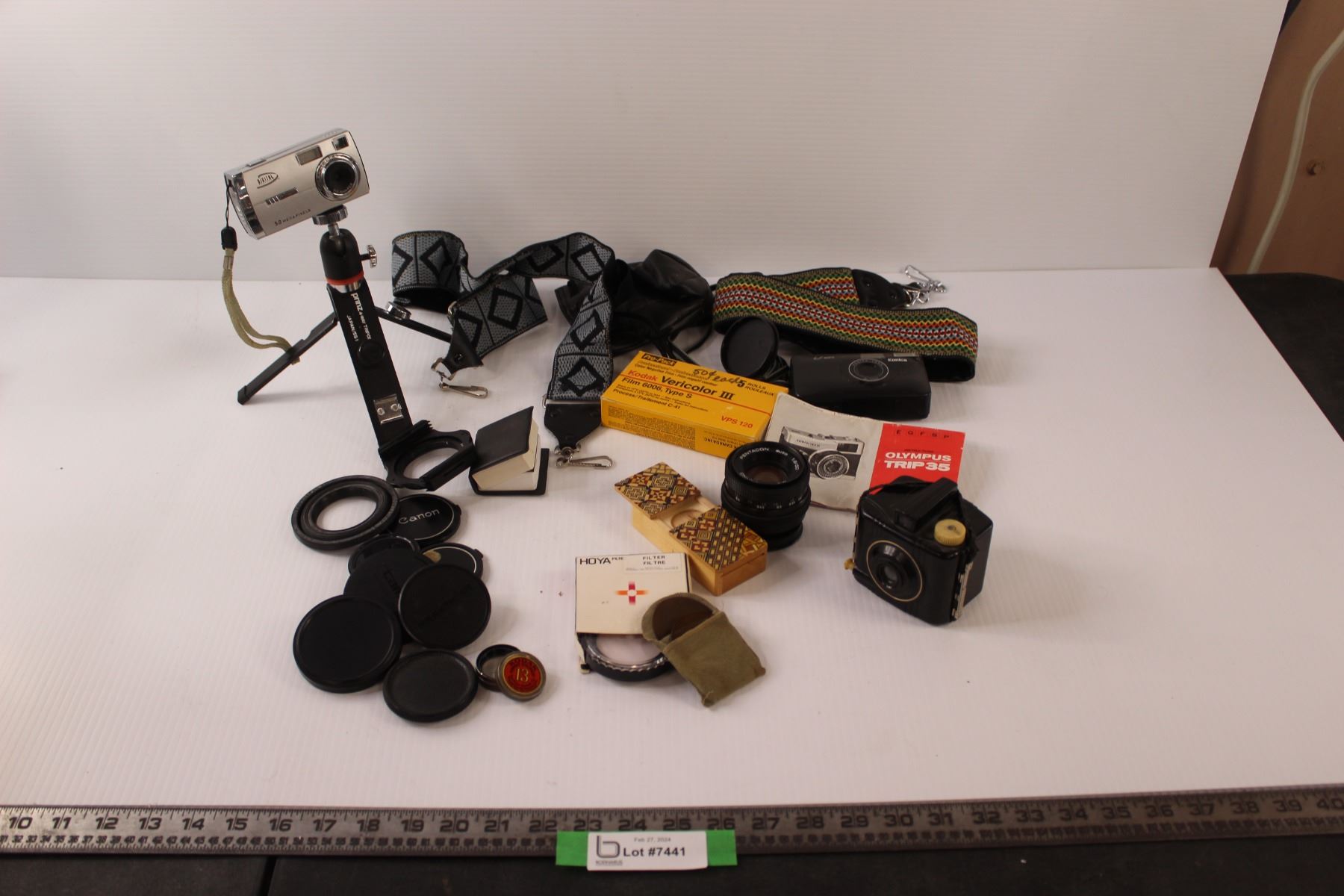 Vintage Camera Package - Kodak Baby Brownie Special, Lens Caps, Pentacon 1.8/50 Lens, Camera Straps, Lens Filters, $ Way Tripod etc.