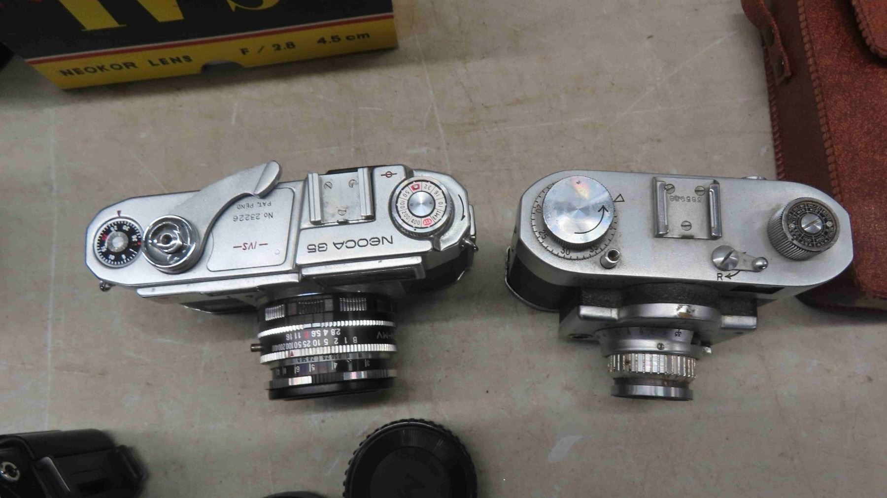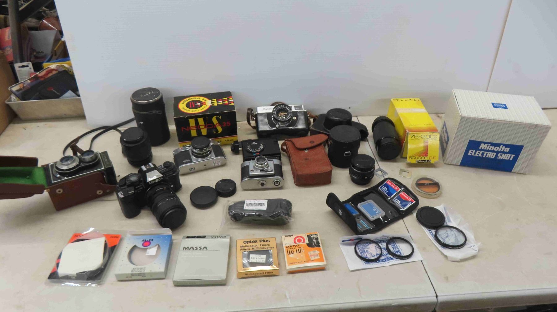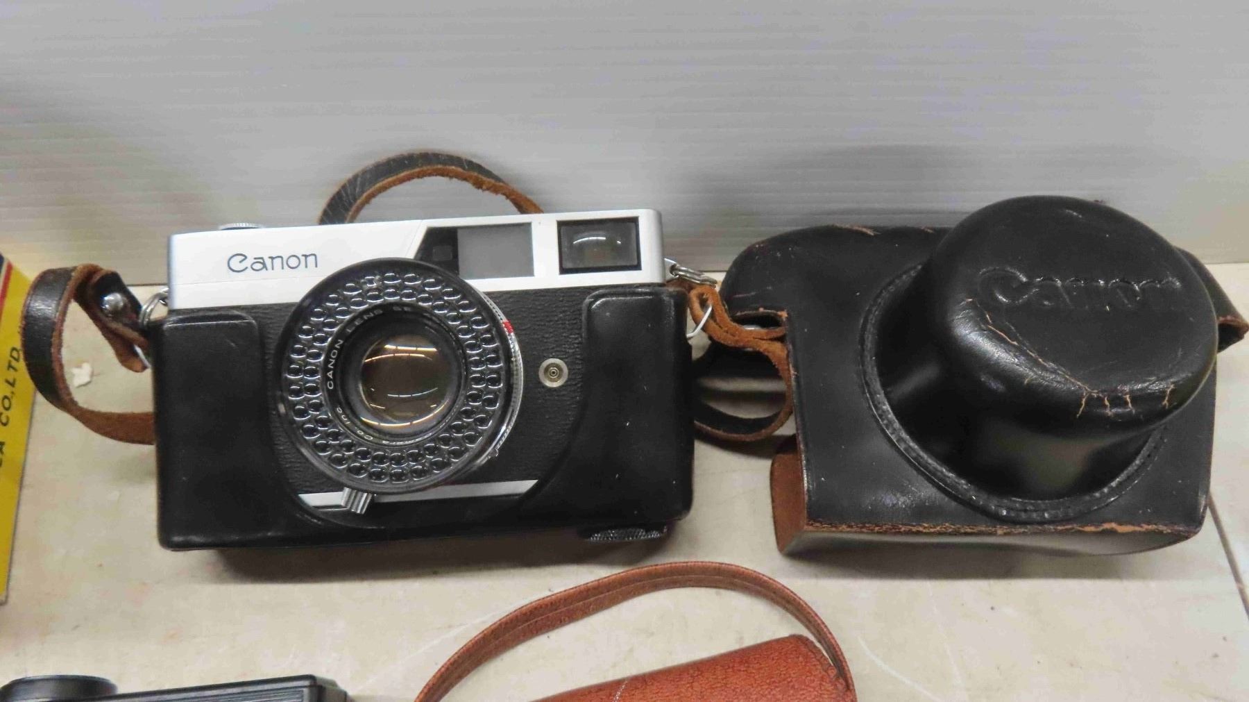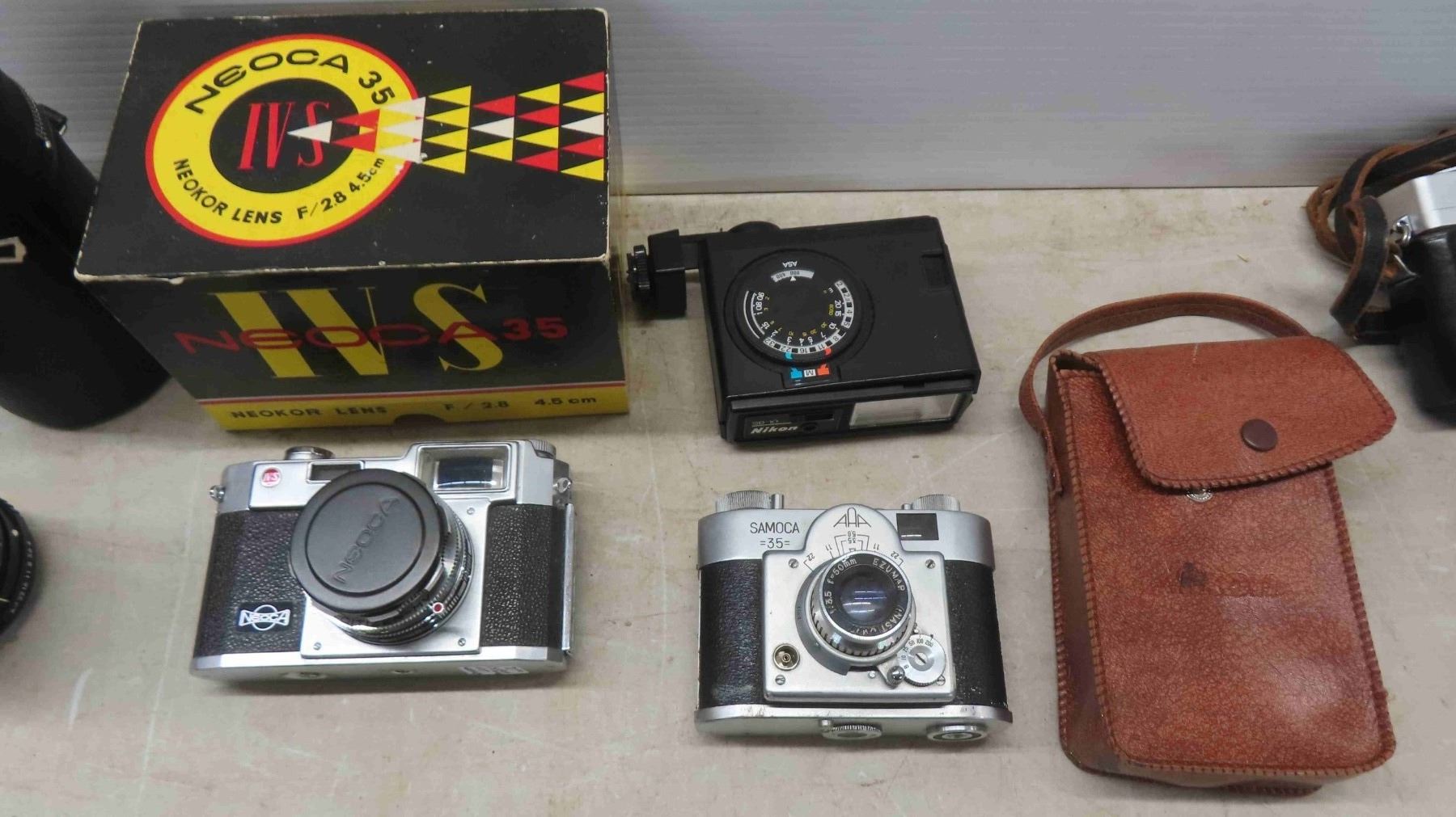 Vintage Cameras with Cases, Lens, Caps, Flashes and More : Flexaret, Minotta, Neoca, Canon Samoca