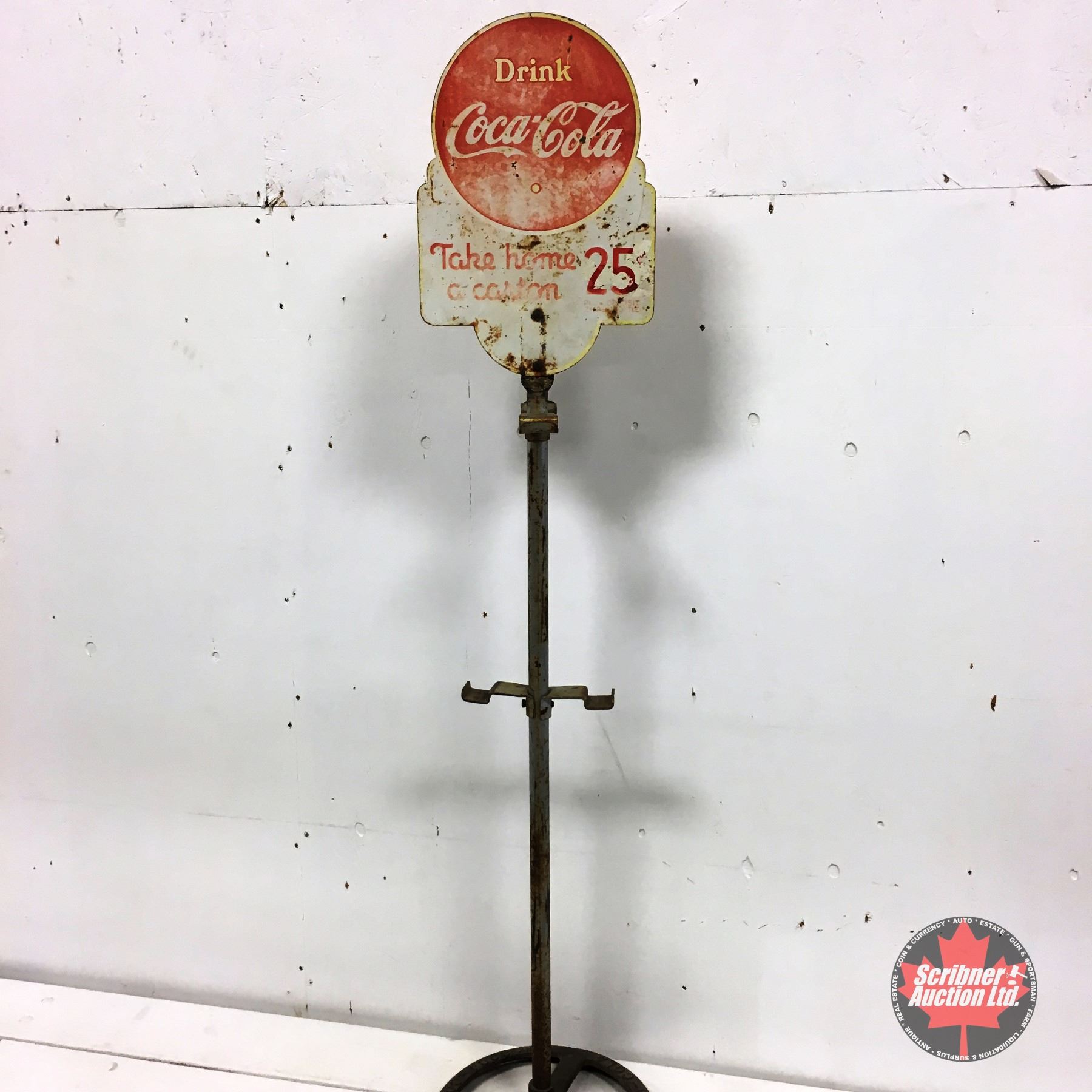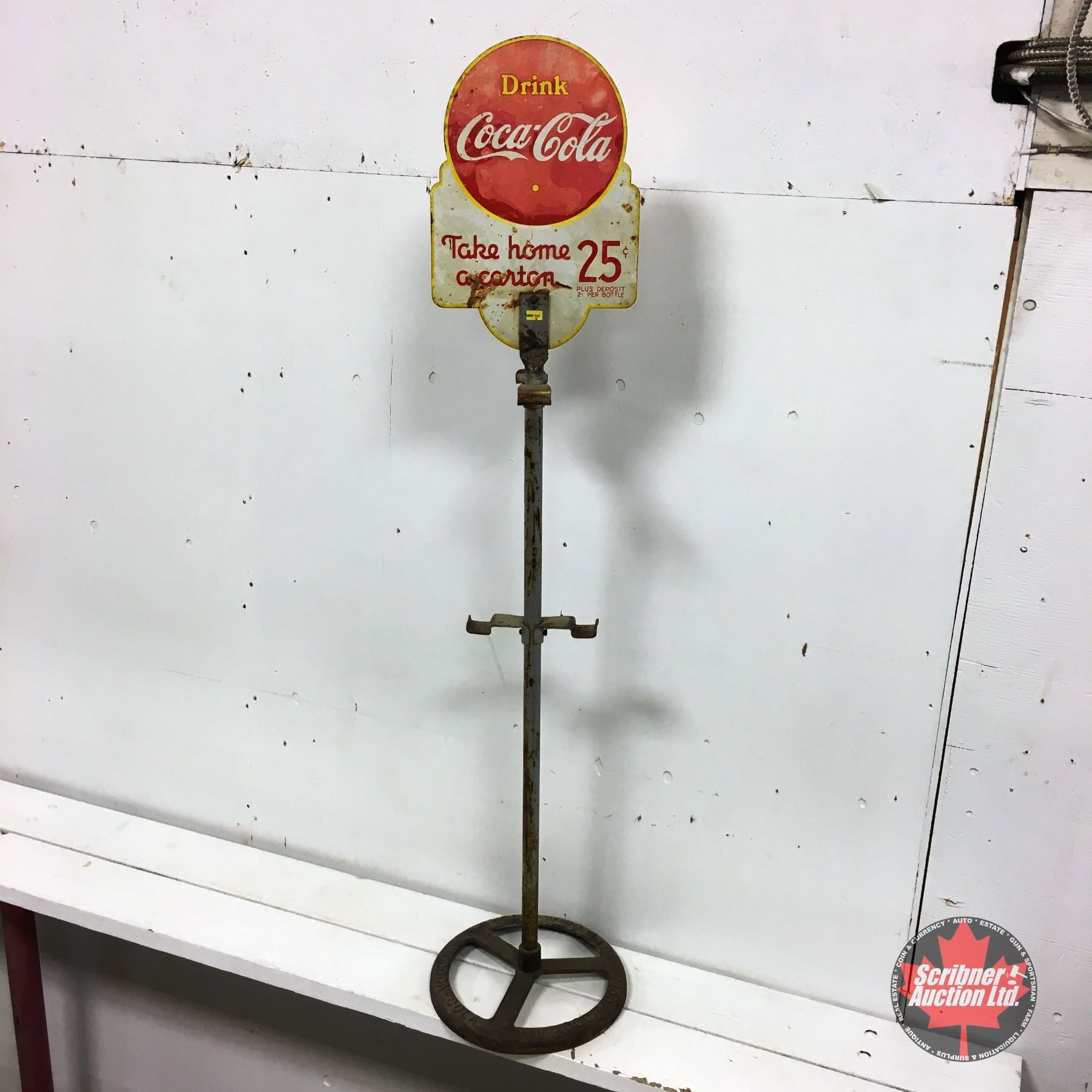 Vintage Canada "Drink Coca-Cola" 6 Pack Store Display Bottle Rack "Take Home a Carton" Sign (Cast Base)