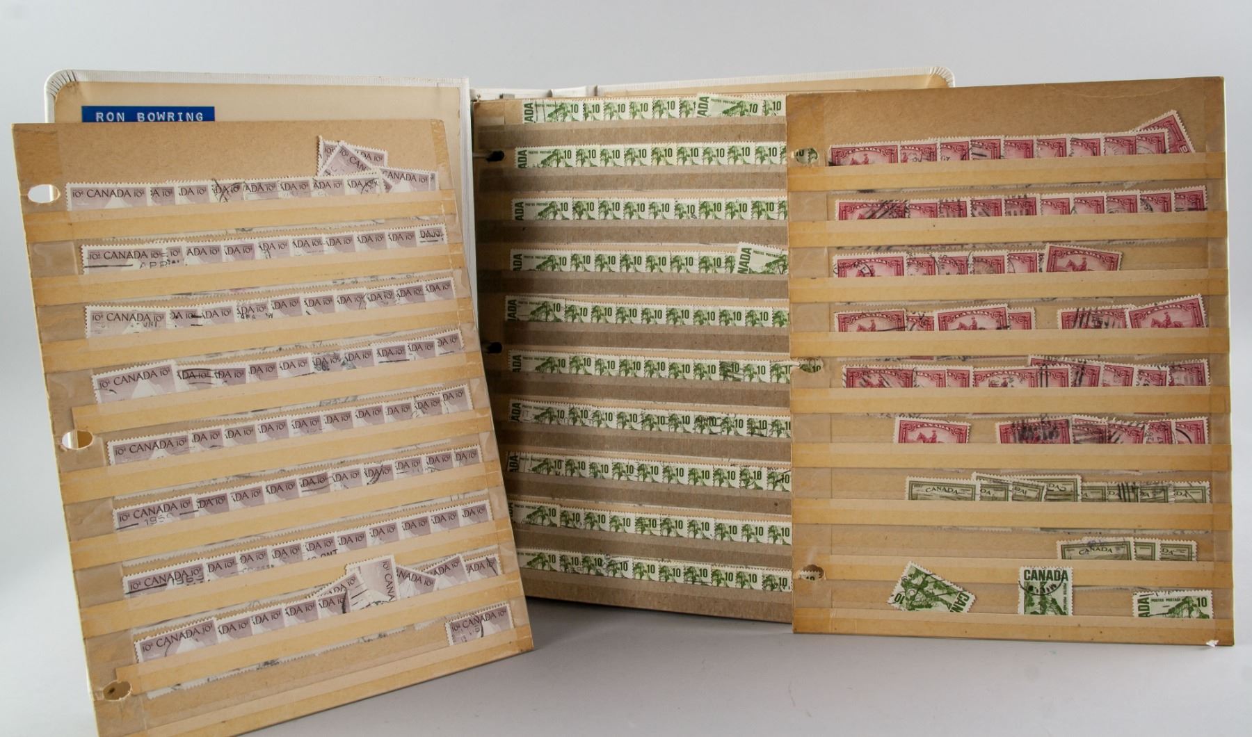 Vintage Canadian postage stamps collection book, 59 pages, over a thousand assorted Canadian stamps, 10 x 29 x 26 cm, 3923 grams