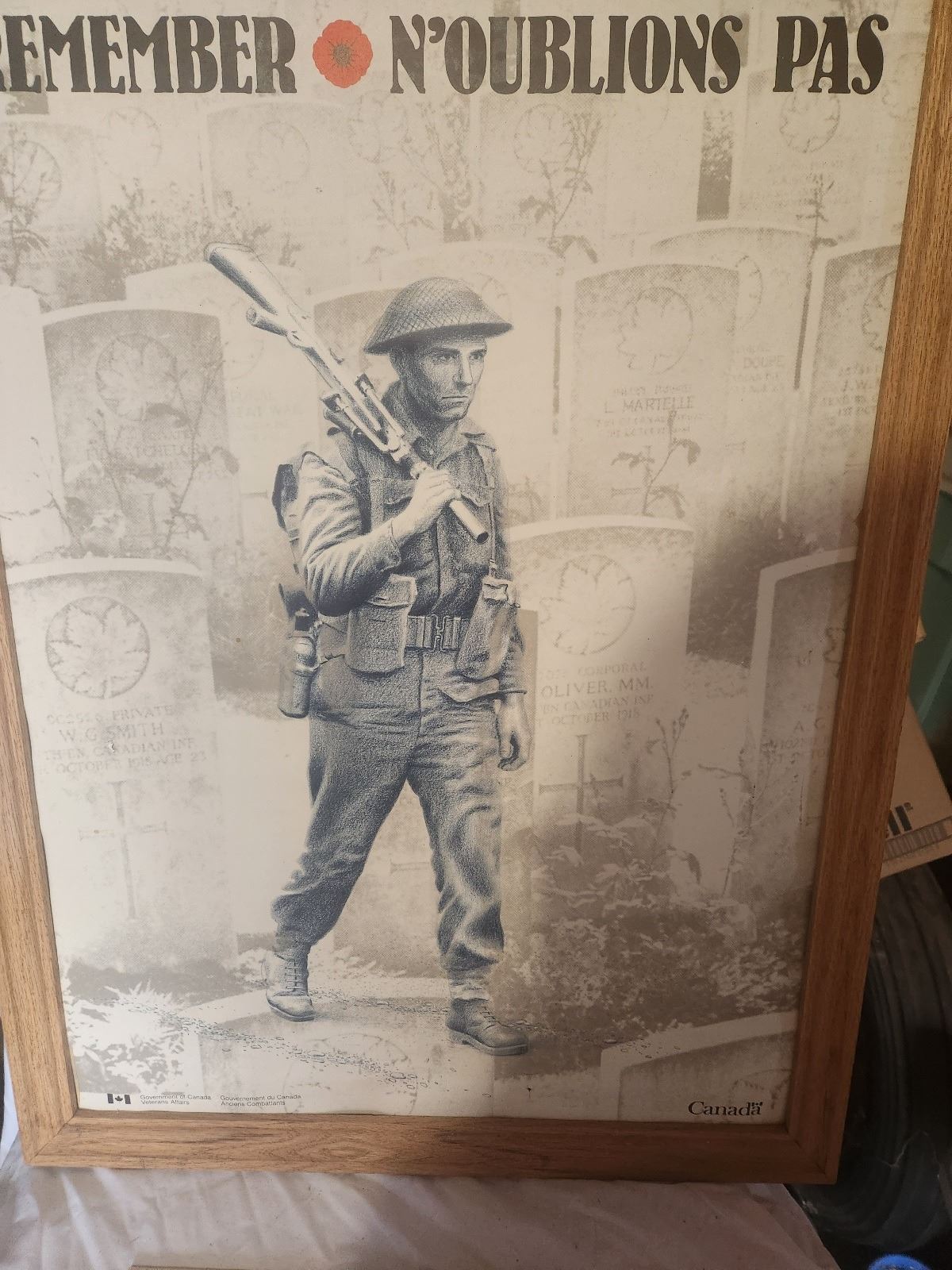 Vintage Canadian Remembrance Day Poster in frame(approx. 21by28.5)
