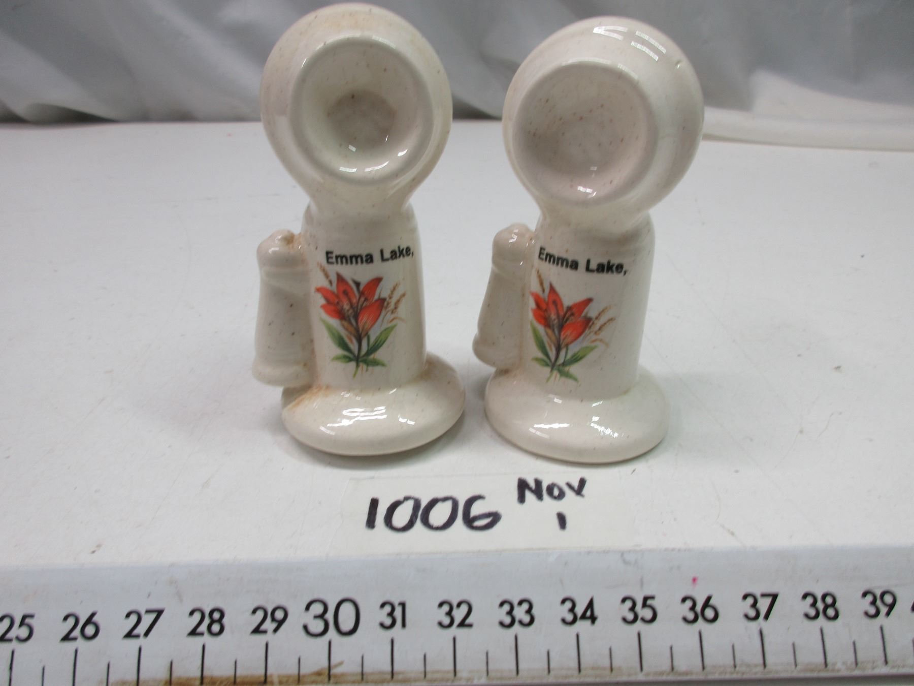 Vintage Candlestick Telephone Salt and Pepper Shaker Set Stamped (Emma Lake)