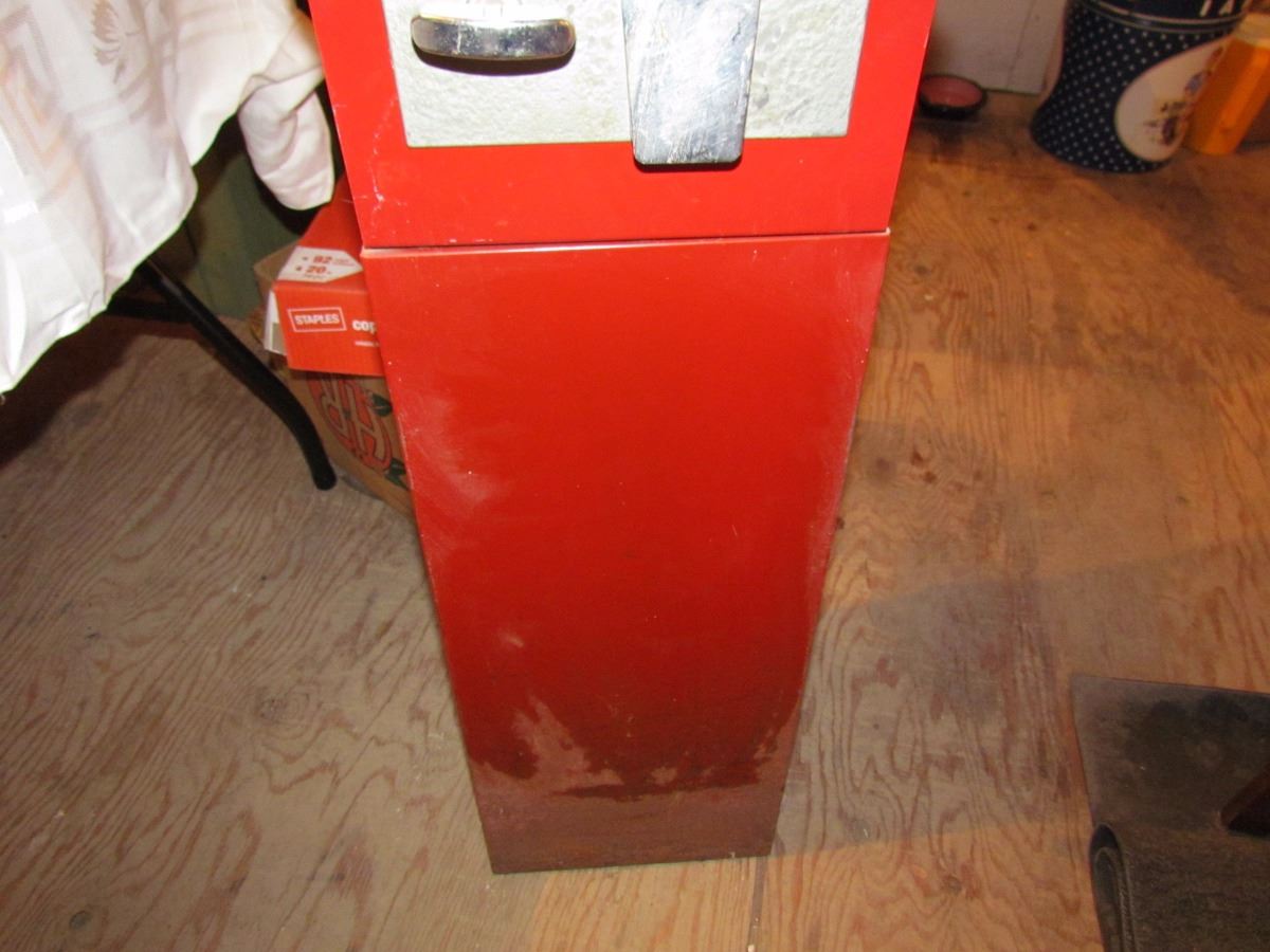 approx 40" tall. 10" wide. 7" deep. Broken container. No keys.