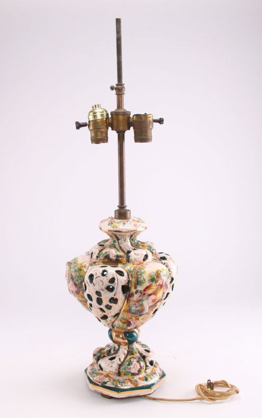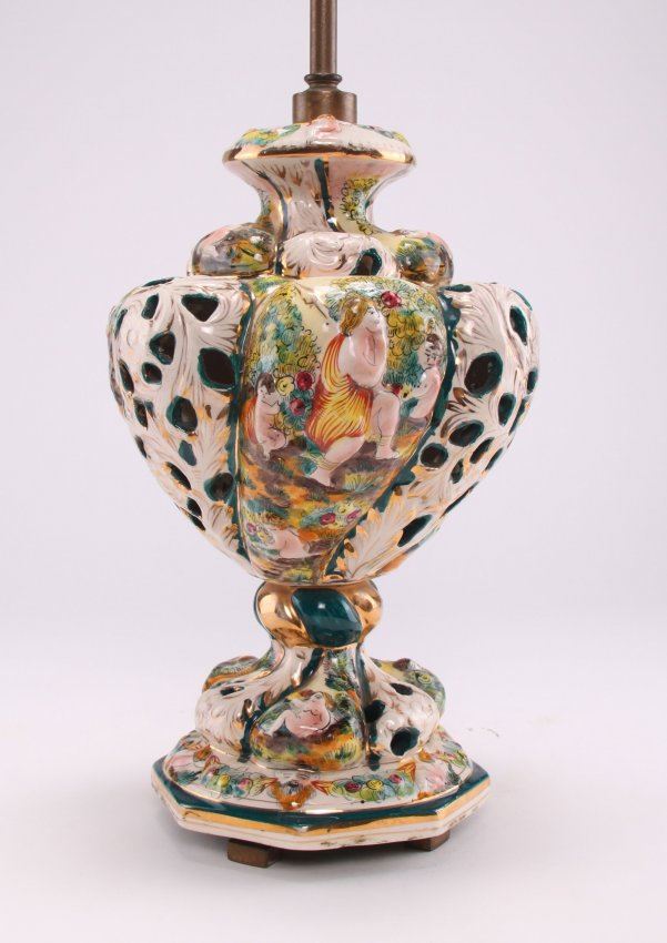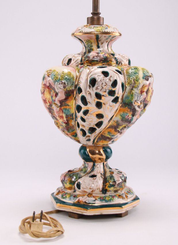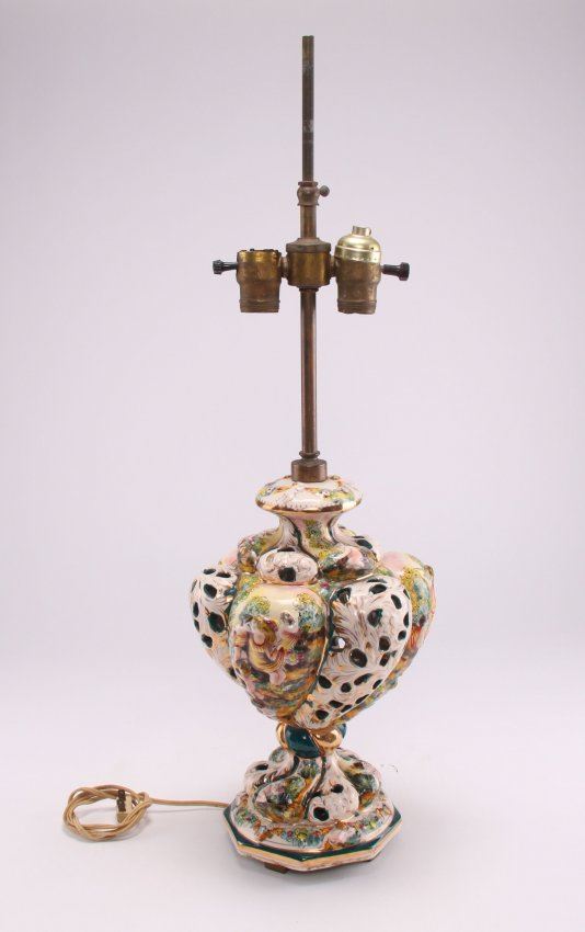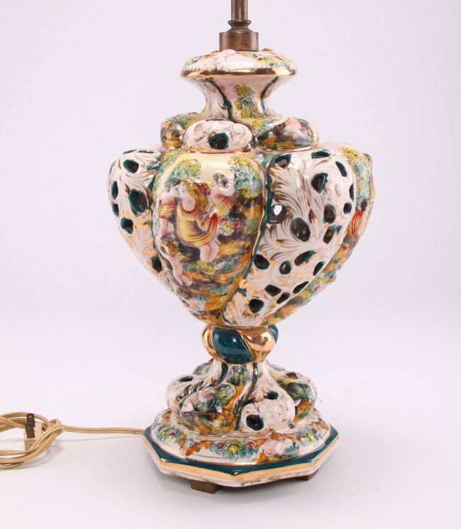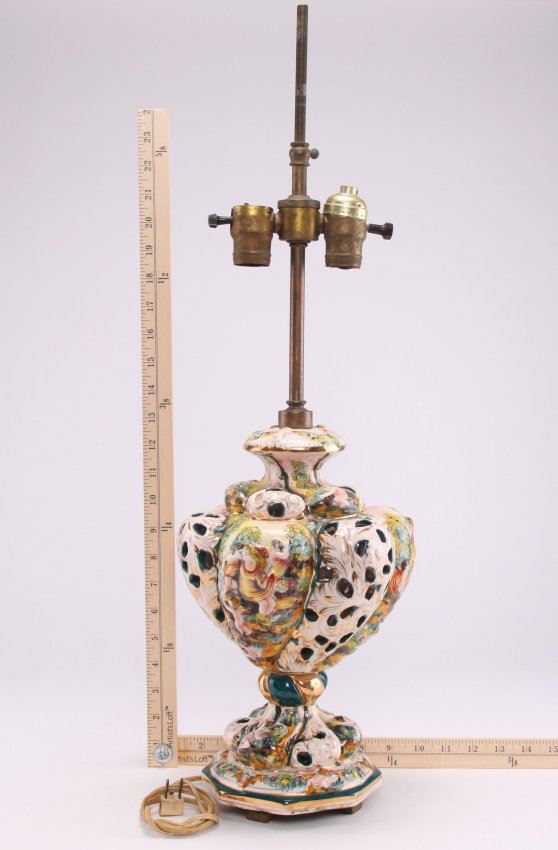 Vintage Capodimonte lamp. (Size: See second photo for measurement.) Photos are part of the description representing the condition report. Pangaea Auctions urges Bidder's to view all attached photos.