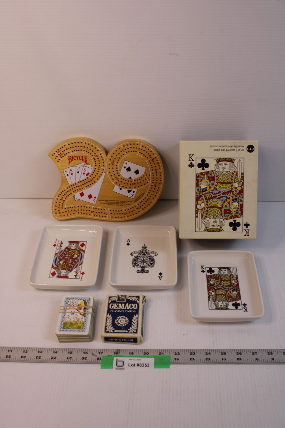 Vintage Card Plates in Box, 29 Cribbage Board and Cards