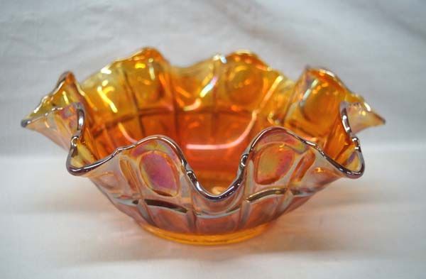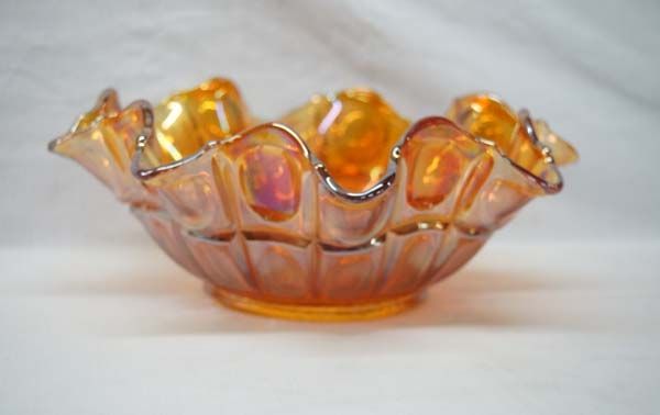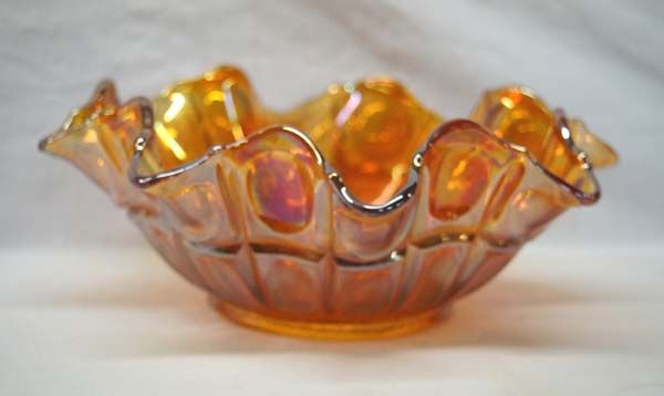 Vintage Carnival Glass Ruffled Bowl, measures 3.5''H x 9''W