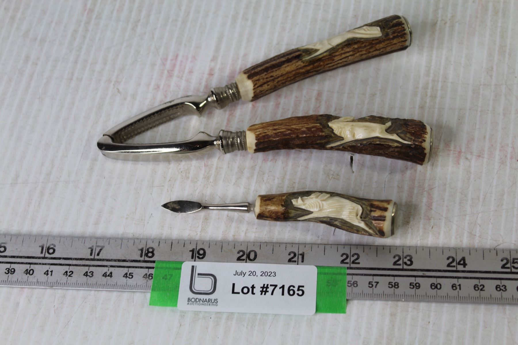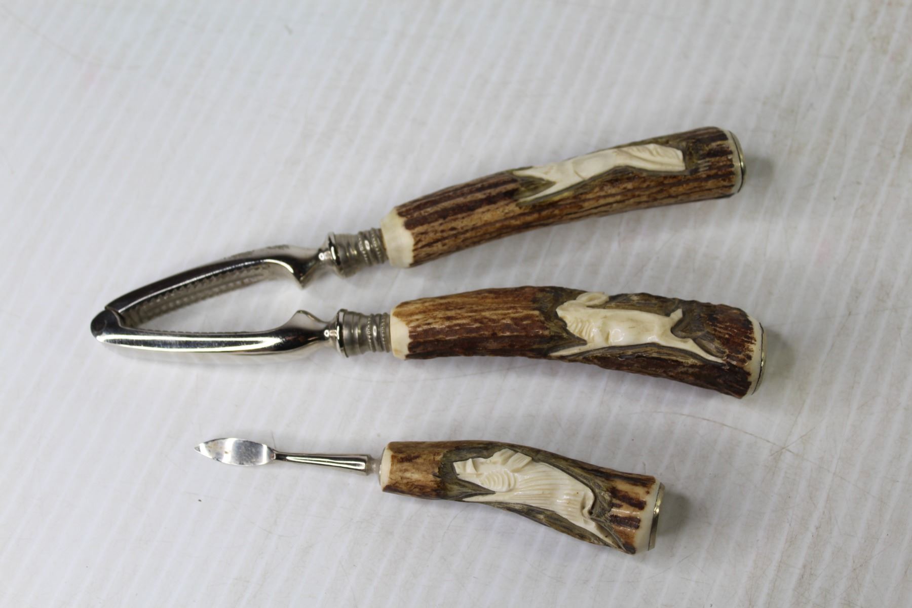 Vintage Carved Antler Nut Cracker & Pick Set