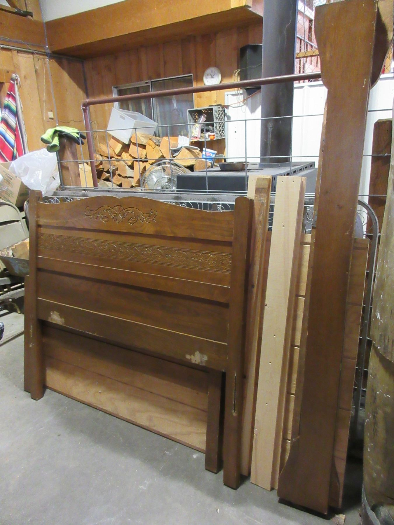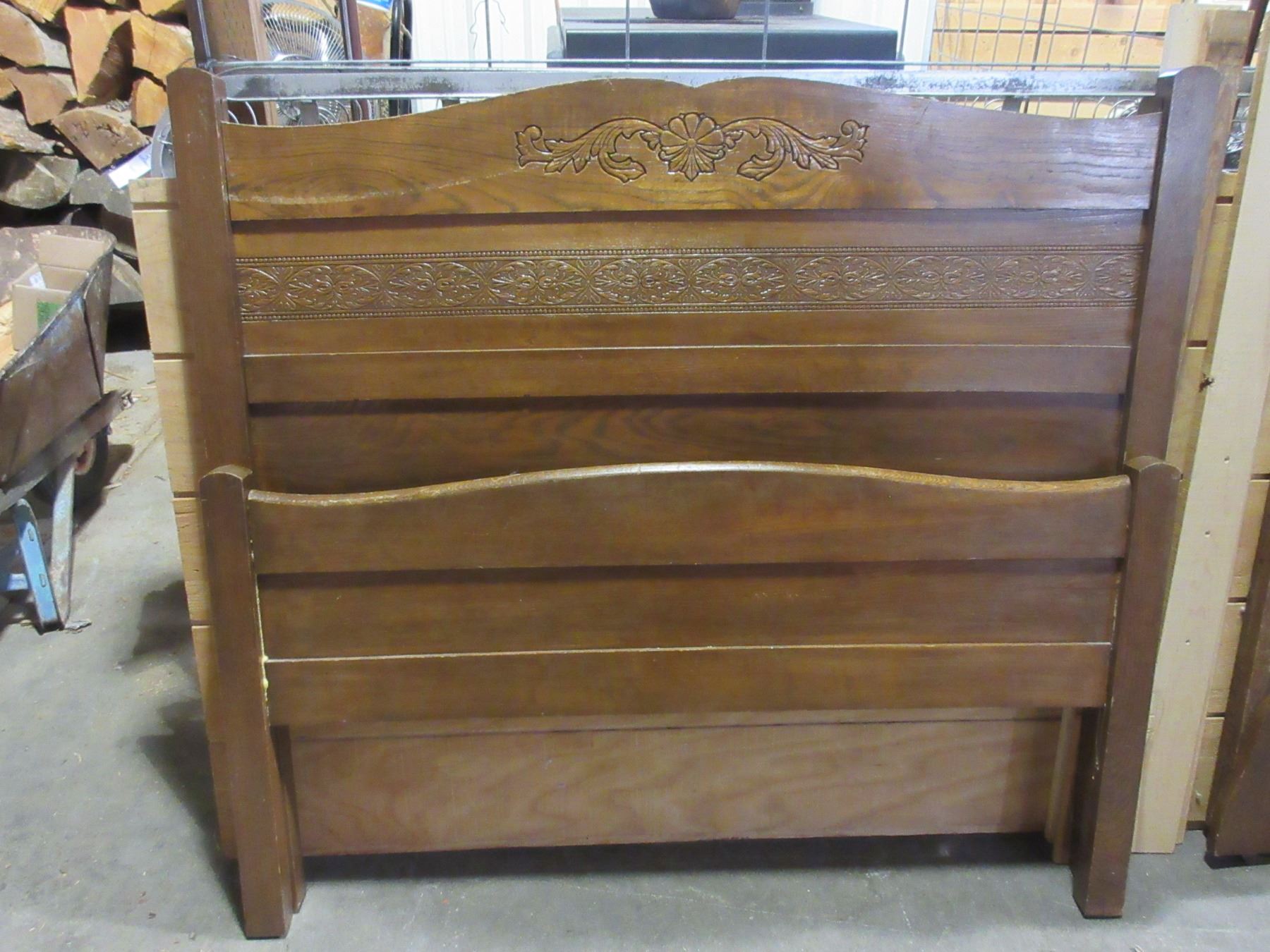 Vintage Carved Double Bed- Rails- Box Springs- Slats- Plywood- Fair Condition