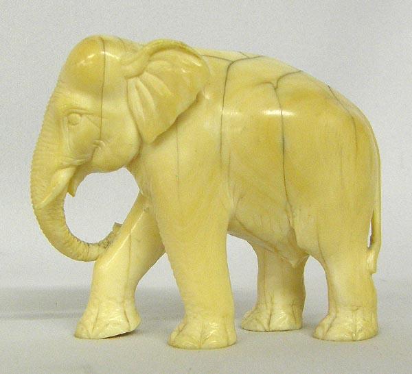 Vintage Carved Ivory Elephant. One trunk has broken off. Measures approx. 2.5''Hx2.75''Lx1''W. Buyers Pay Actual Shipping and Handling Charges(see terms and conditions for more information).