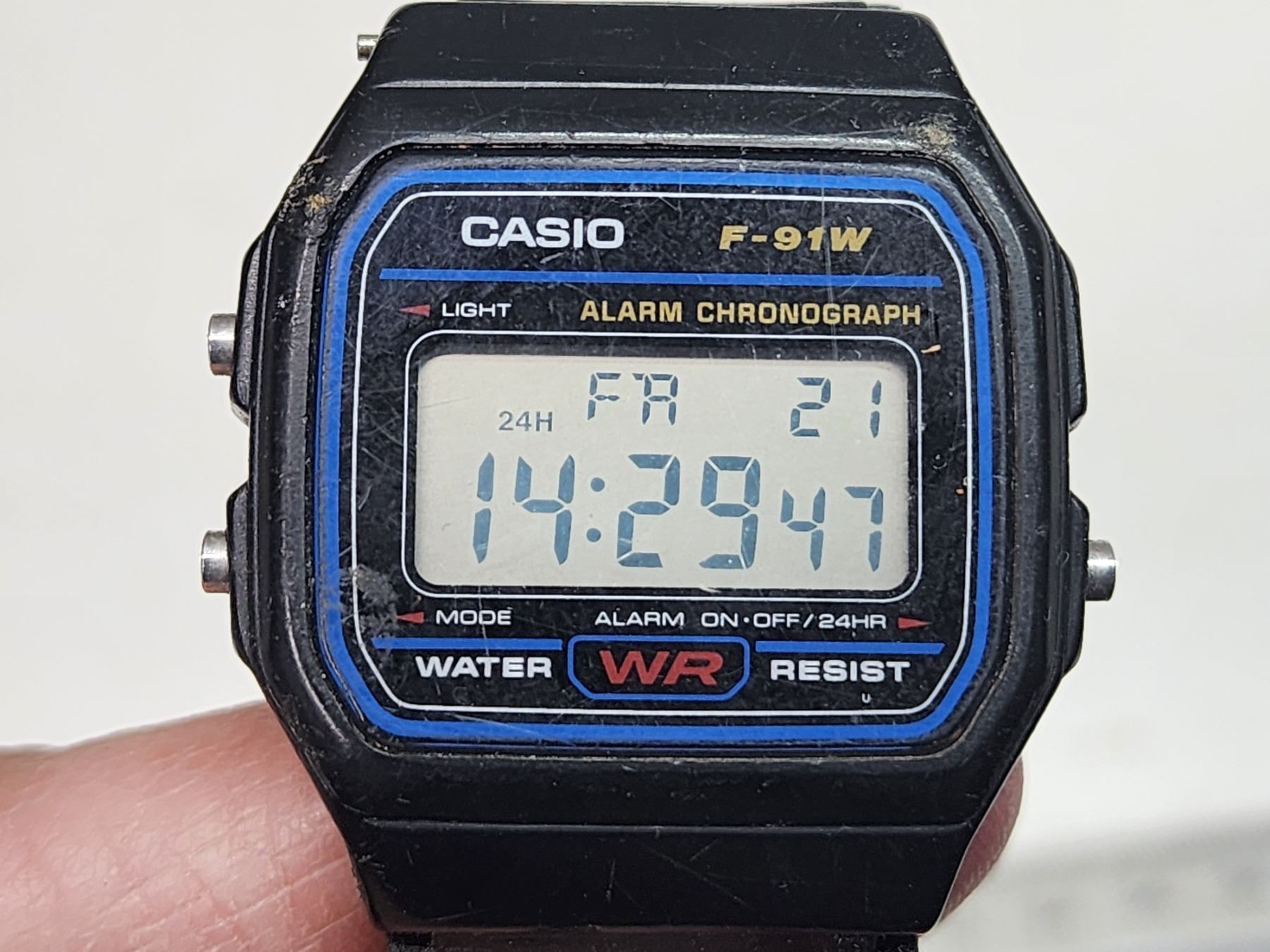 Vintage "Casio" F-91W qtz, alarm, chronograph, day/date, new battery - runs