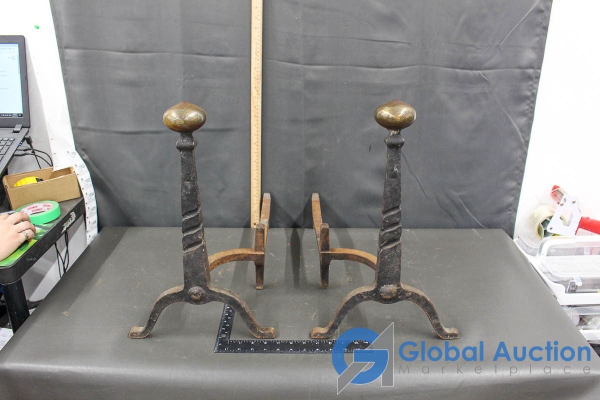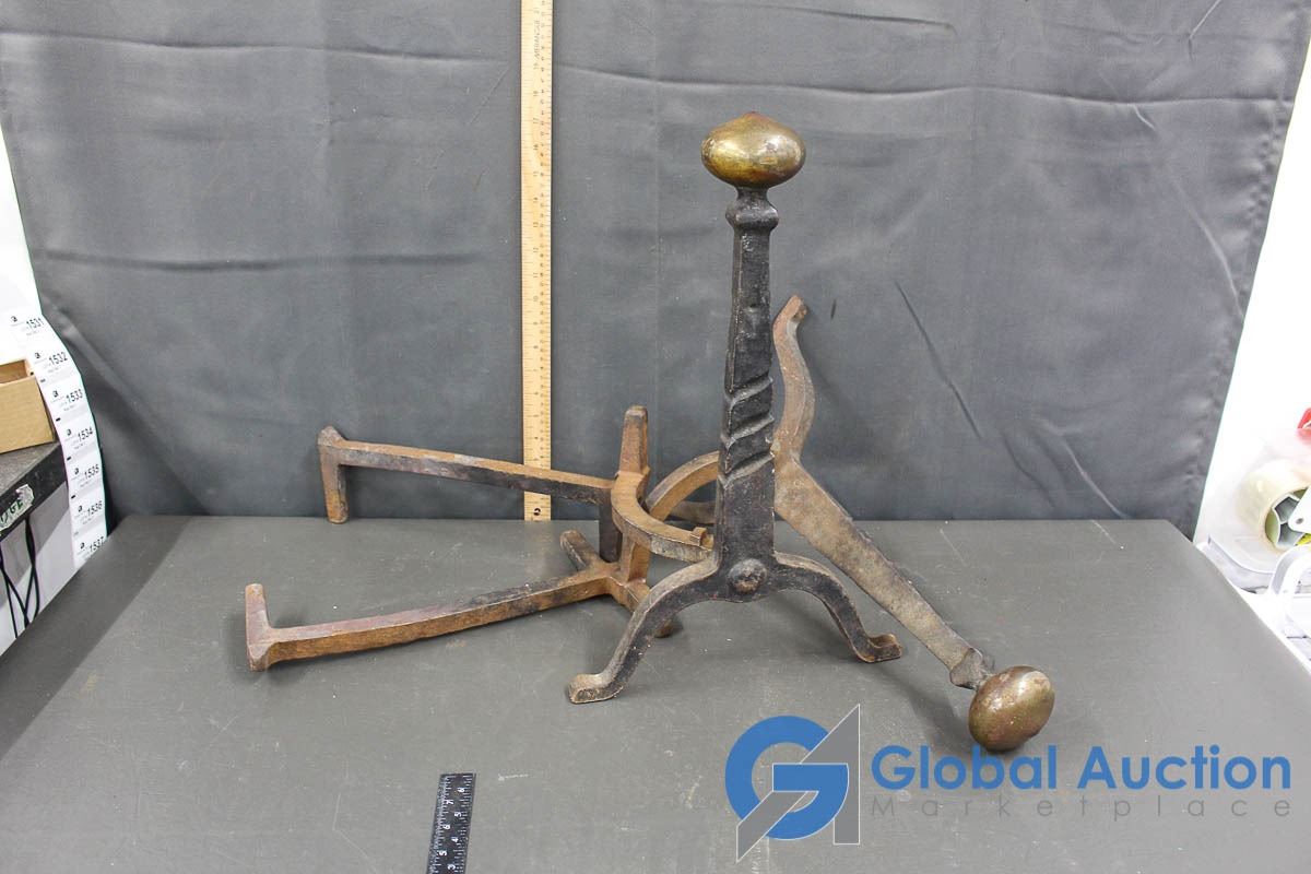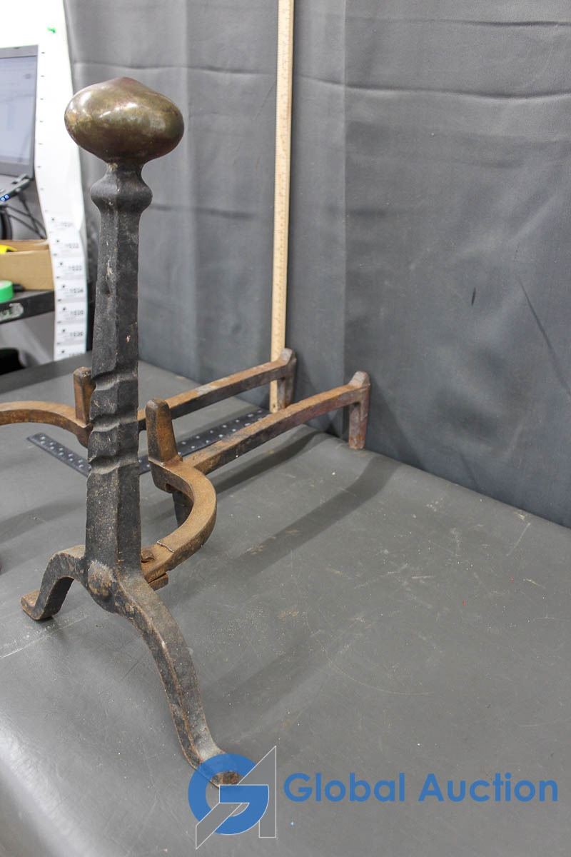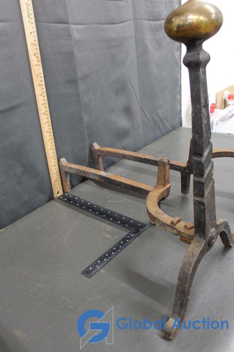 Vintage Cast Iron Metal Log Holder (Brass Tops)