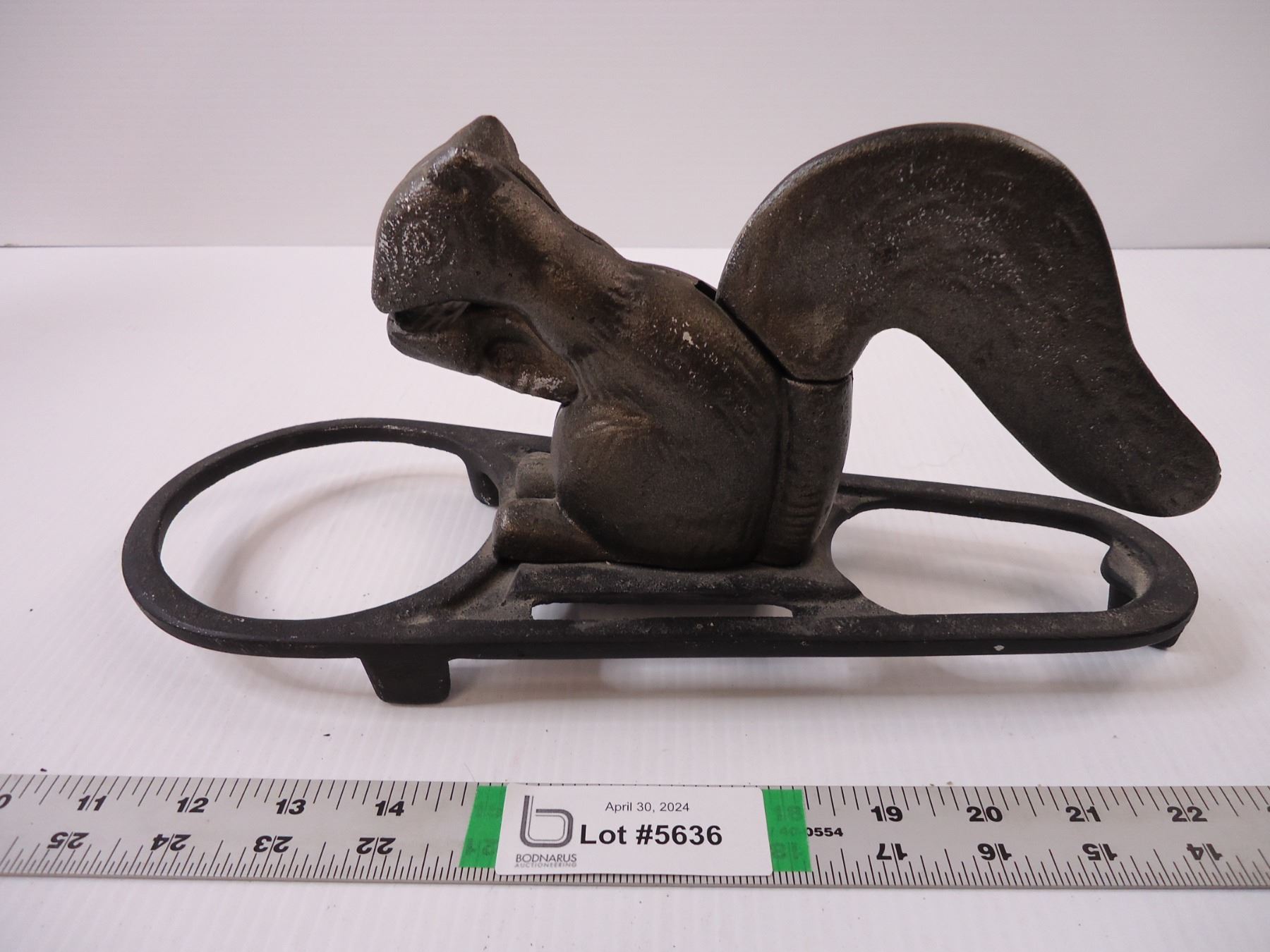 Vintage Cast Iron On Wood Squirrel Nutcracker