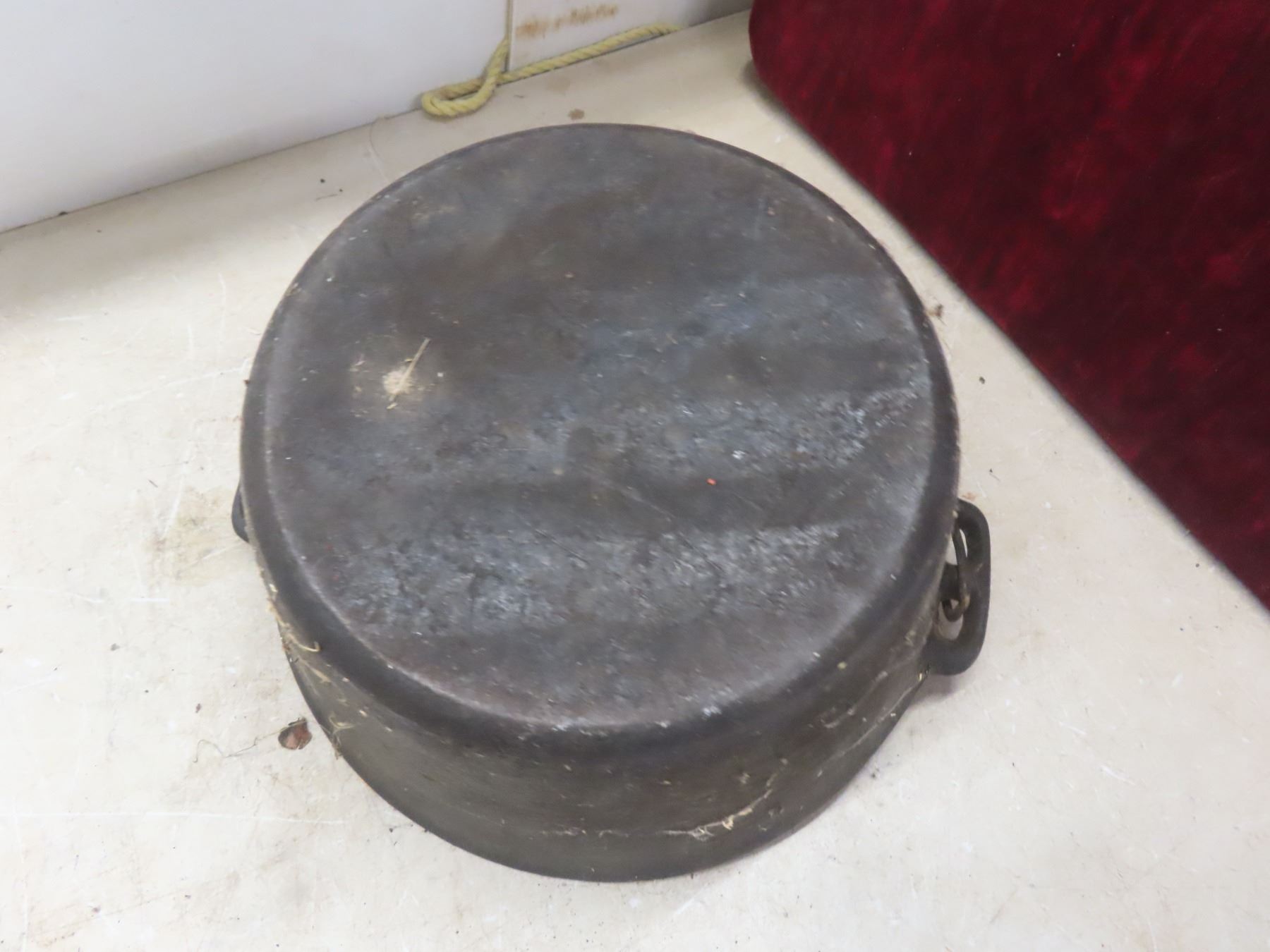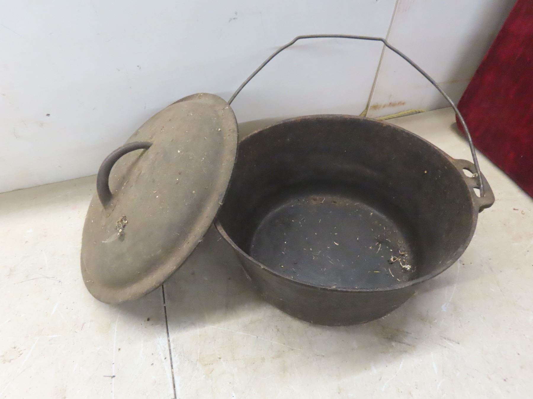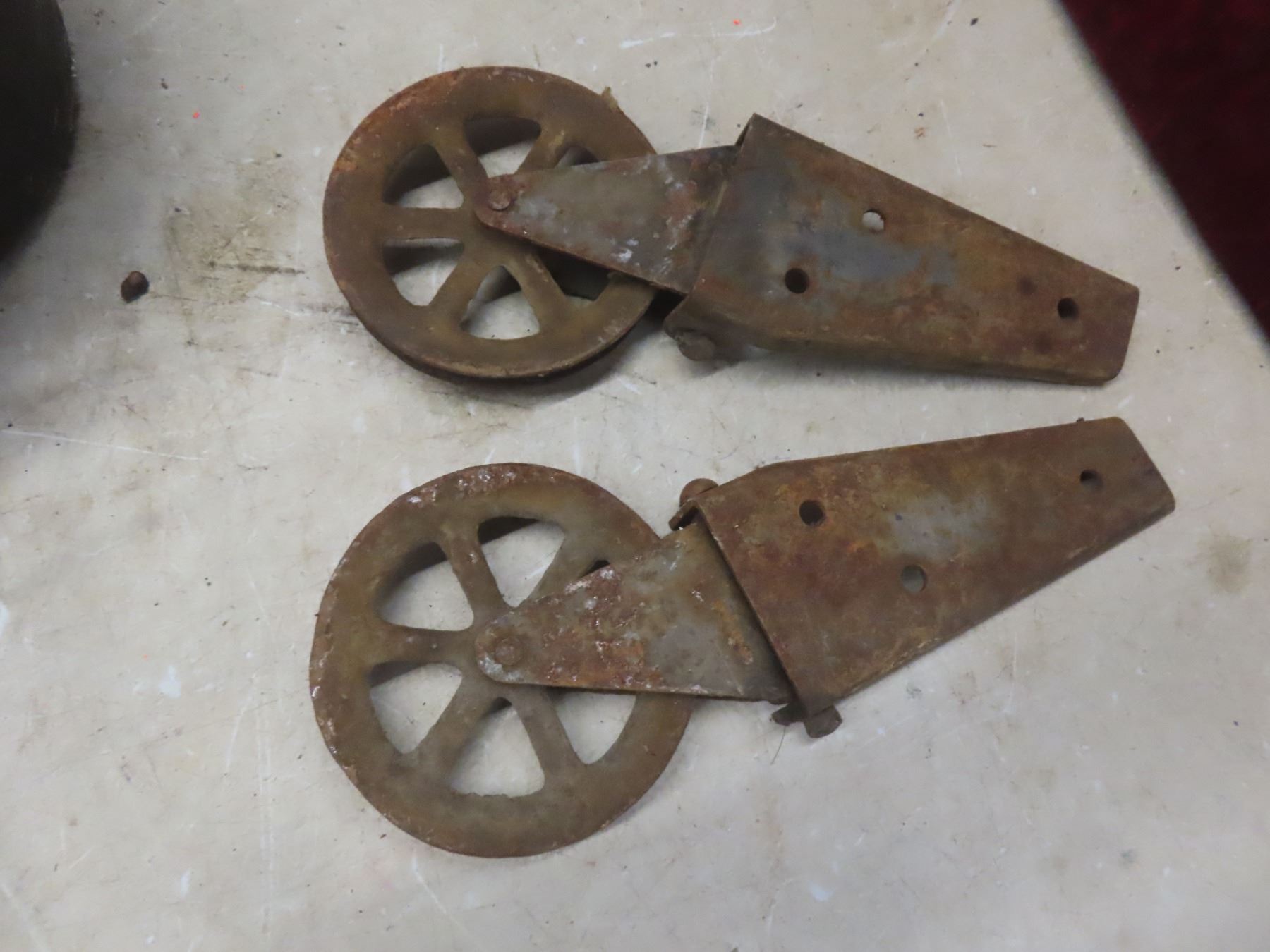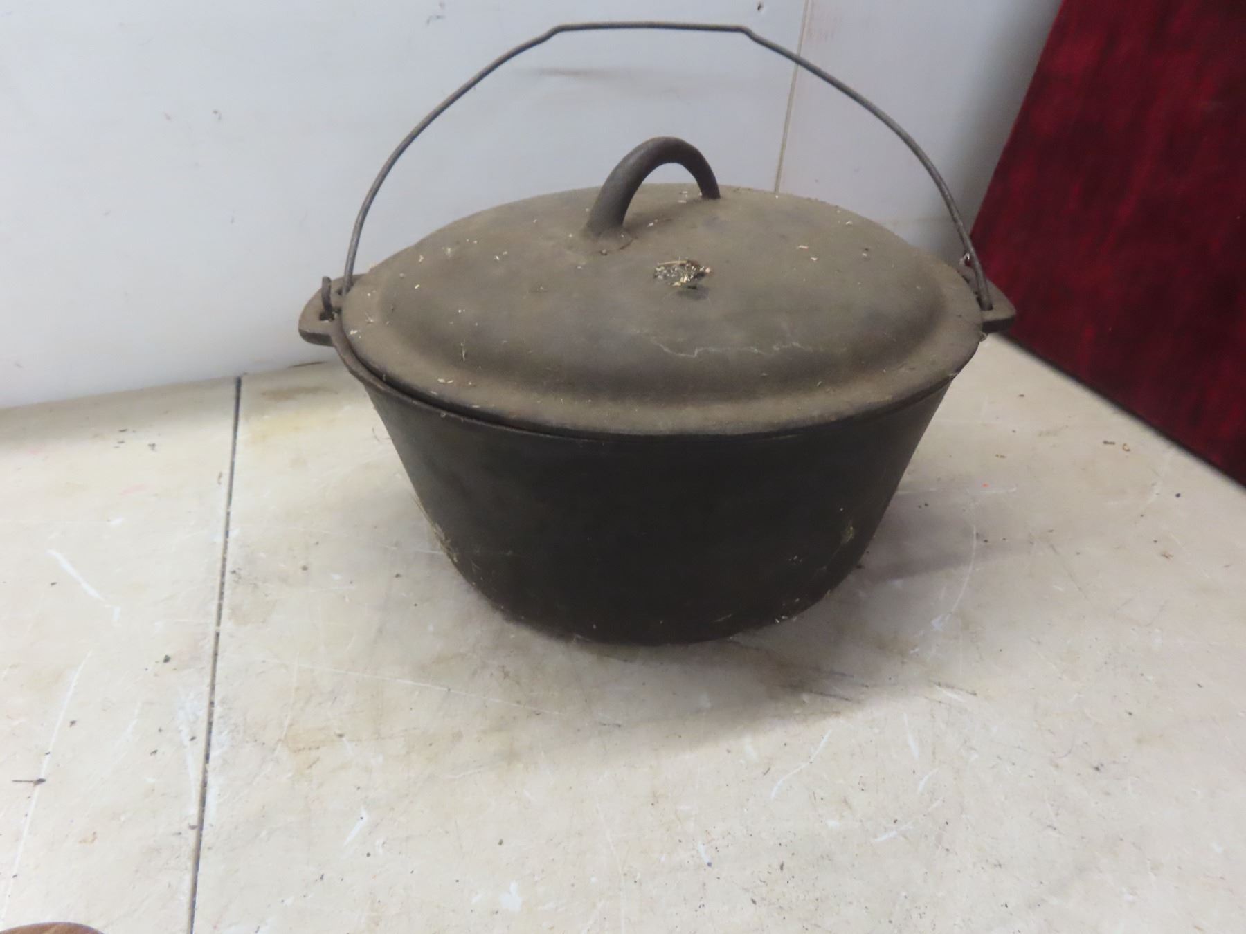Vintage Cast-Iron Pot with Lid; Pulleys; and Manual Hand Drill.