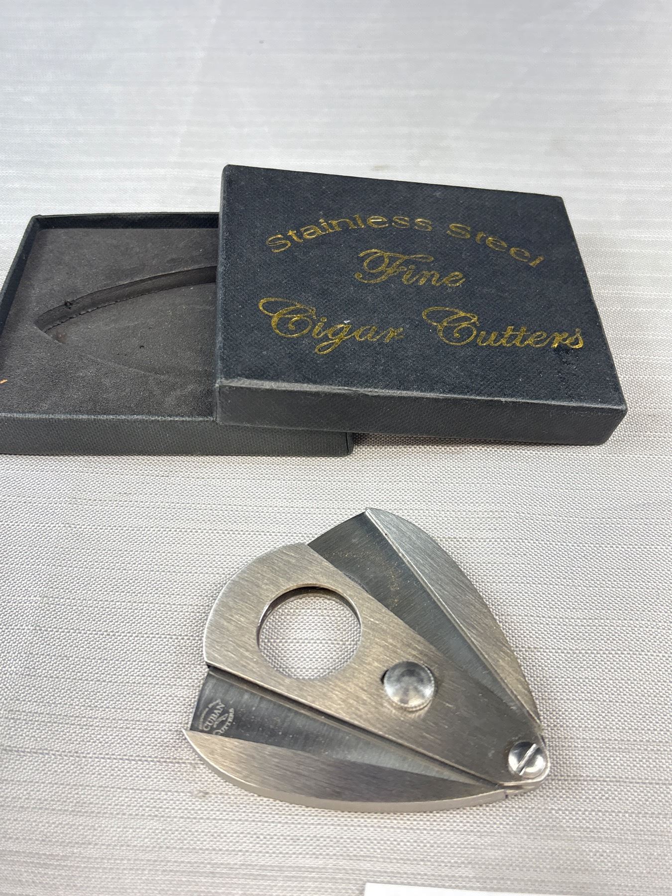 Vintage Cast Ronson Table Lighter Varaflame Bell - Made in New Jersey and Stainless Cigar Cutter