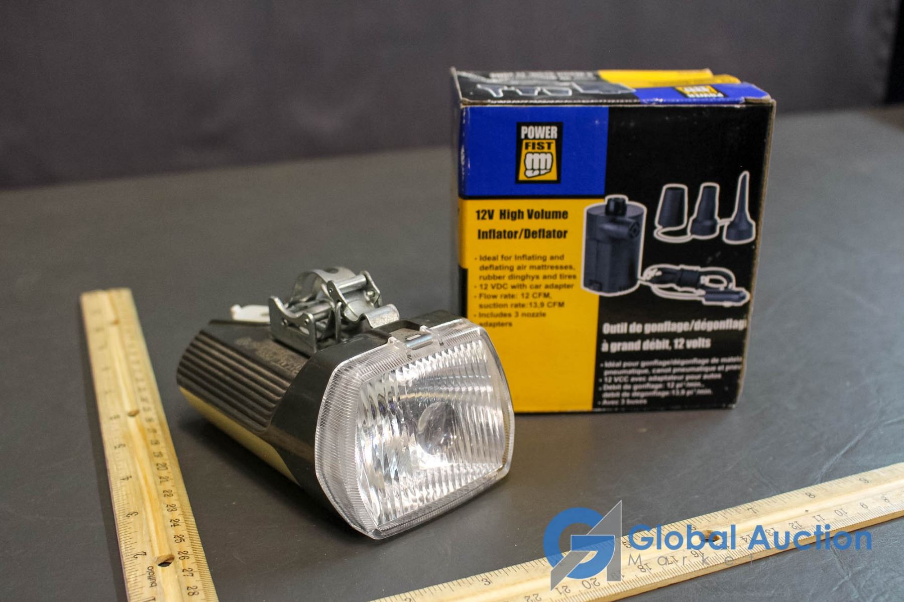 Vintage Cat Eye Battery Operated Bicycle Head Lamp & 12V NIB Inflator/Deflator