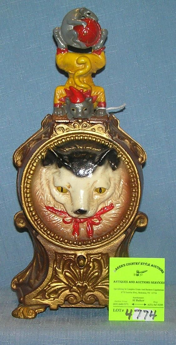 Vintage hand painted cast iron Cat and Mouse mechanical bank from the Book of Knowledge series circa 1950?s $350.00-$400.00