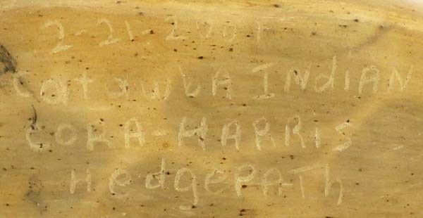 Vintage Native American Catawba Indian Pottery Canoe by Cora Harris Hedgepath, measures 7.5'' x 2.5'' x 2.5'' and is signed on the bottom