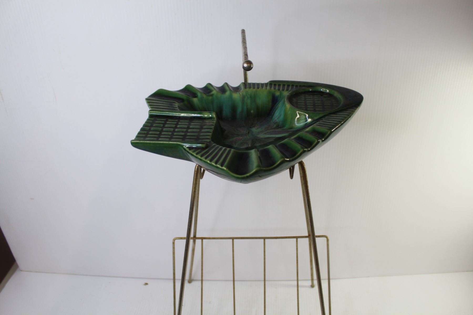 Vintage Ceramic Ashtray on Metal Wire/Round Bar Stand (some rusting)