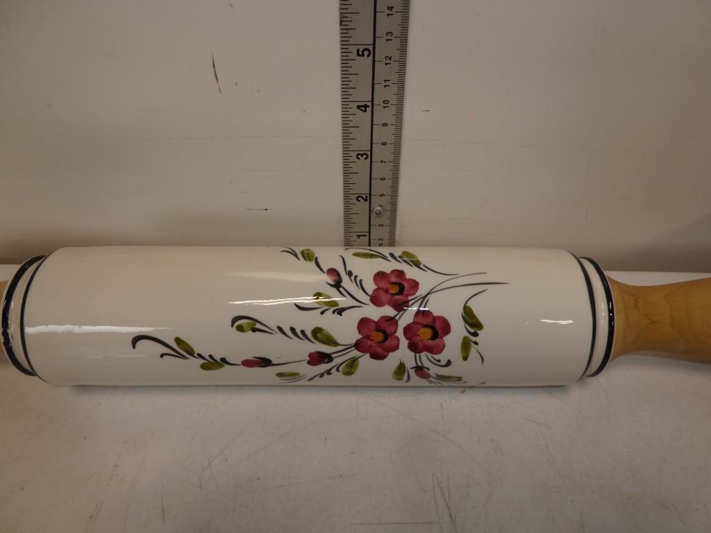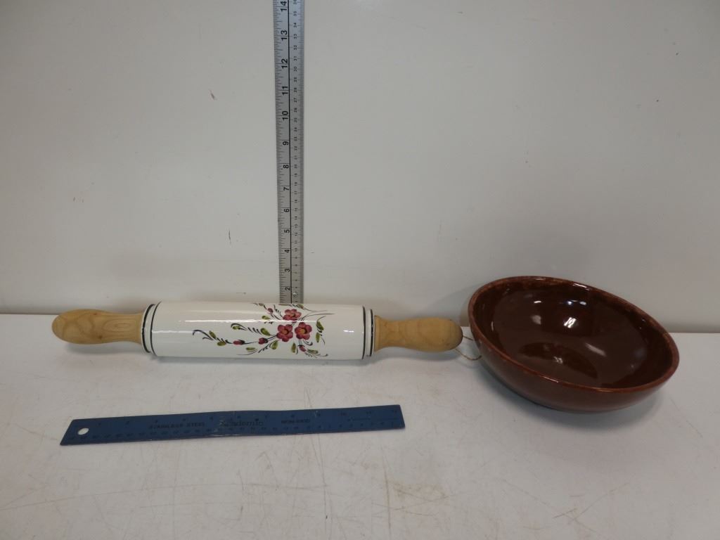 Vintage Ceramic Dough Roller and Stone Serving Dih