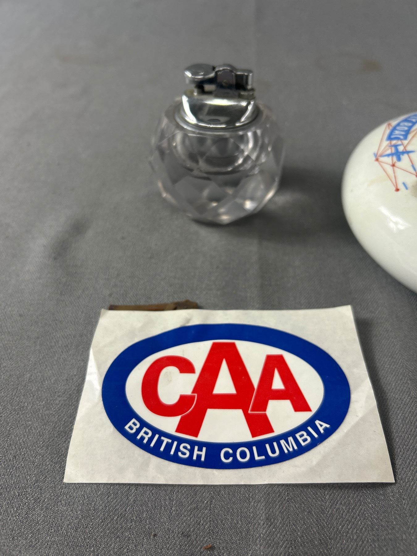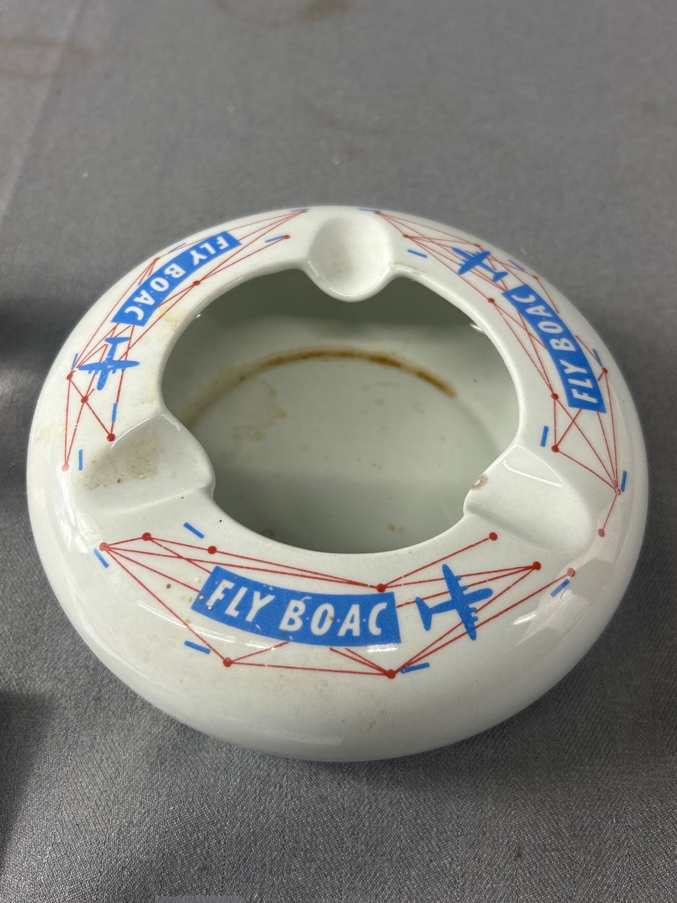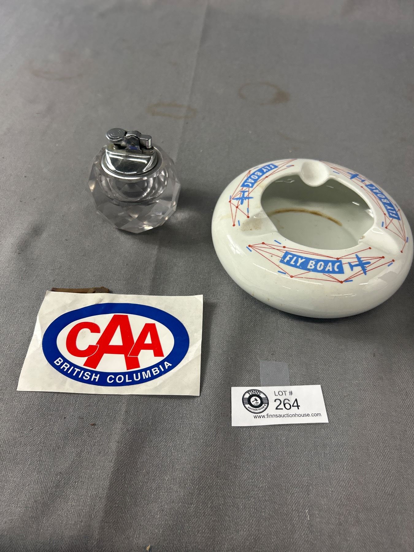 Vintage Ceramic "Fly B.O.A.C" Ashtray & Crystal Made In Japan Table Lighter